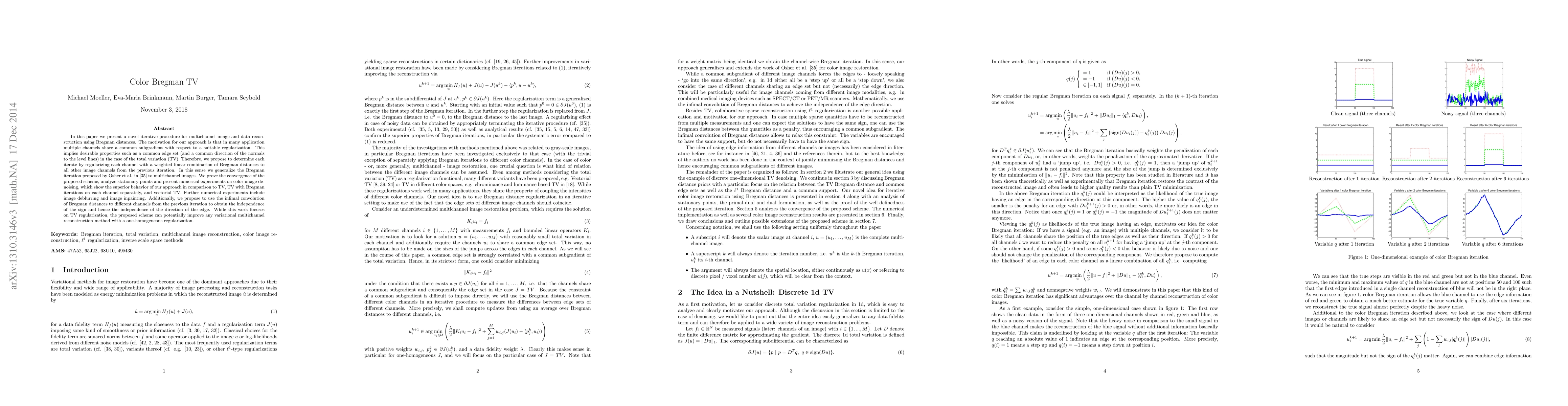 In this paper we present a novel iterative procedure for multichannel image and data reconstruction using Bregman distances. With the motivation that multiple channels sharing a common subgradient with respect to a suitable regularization implies desirable properties such as a common edge set (and a common direction of the normals to the level lines) in the case of the total variation (TV), we propose to determine each iterate by regularizing each channel with a weighted linear combination of Bregman distances to all other image channels from the previous iteration. In this sense we generalize the Bregman iteration proposed by Osher et al. to multichannel images. We prove the convergence of the proposed scheme, analyze stationary points and present numerical experiments on color image denoising, which show the superior behavior of our approach in comparison to TV, TV with Bregman iterations on each channel separately, and vectorial TV. Additionally, we propose to use the infimal convolution of Bregman distances to different channels from the previous iteration to obtain the independence of the sign and hence the independence of the direction of the edge. While this work focuses on TV regularization, the proposed scheme can potentially improve any variational multichannel reconstruction method with a 1-homogeneous regularization.