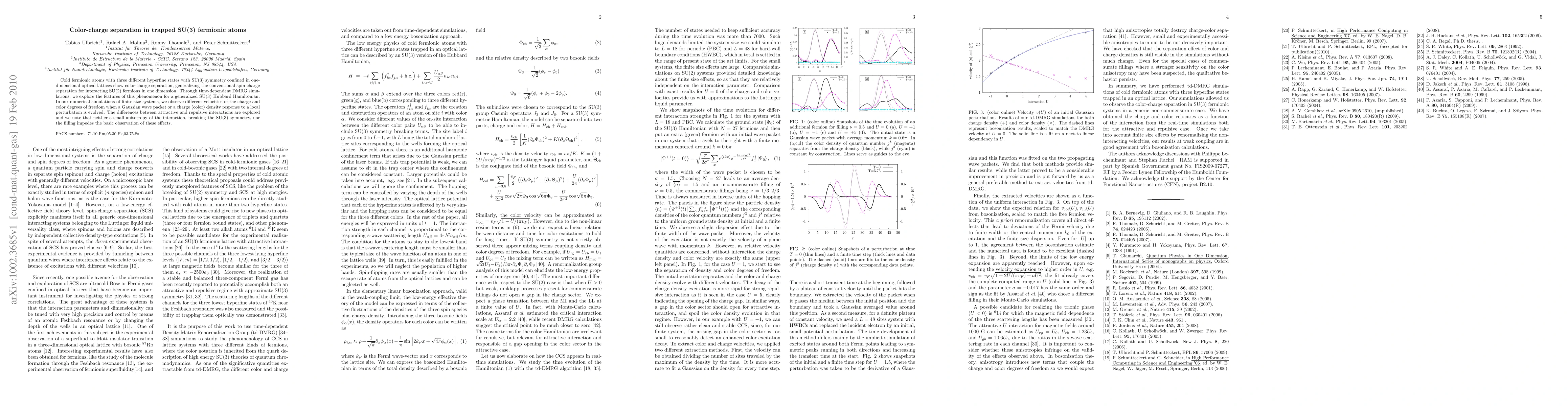 Researchers observe color-charge separation in SU(3) fermionic atoms trapped in one-dimensional optical lattices, a phenomenon not seen in SU(2) systems.