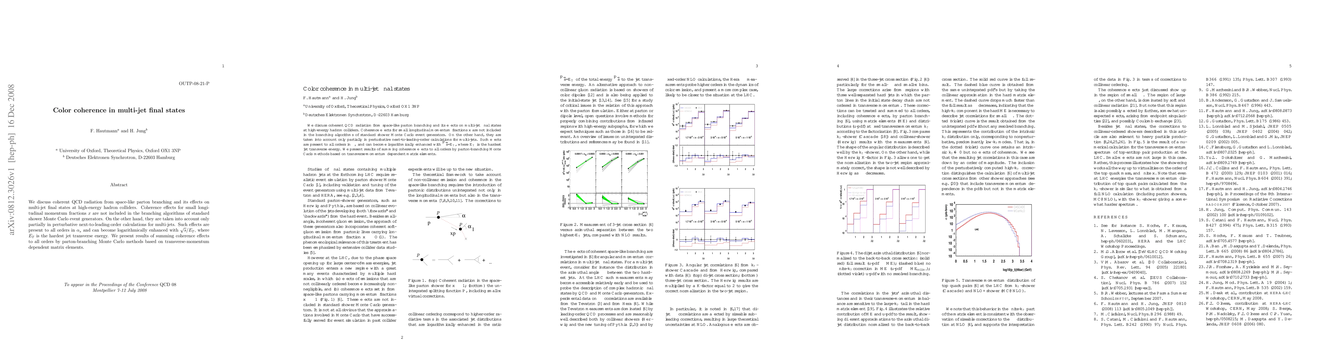 We discuss coherent QCD radiation from space-like parton branching and its effects on multi-jet final states at high-energy hadron colliders. Coherence effects for small longitudinal momentum fractions x are not included in the branching algorithms of standard shower Monte Carlo event generators. On the other hand, they are taken into account only partially in perturbative next-to-leading-order calculations for multi-jets. Such effects are present to all orders in alpha_s and can become logarithmically enhanced with \sqrt{s} / E_T, where E_T is the hardest jet transverse energy. We present results of summing coherence effects to all orders by parton-branching Monte Carlo methods based on transverse-momentum dependent matrix elements.
