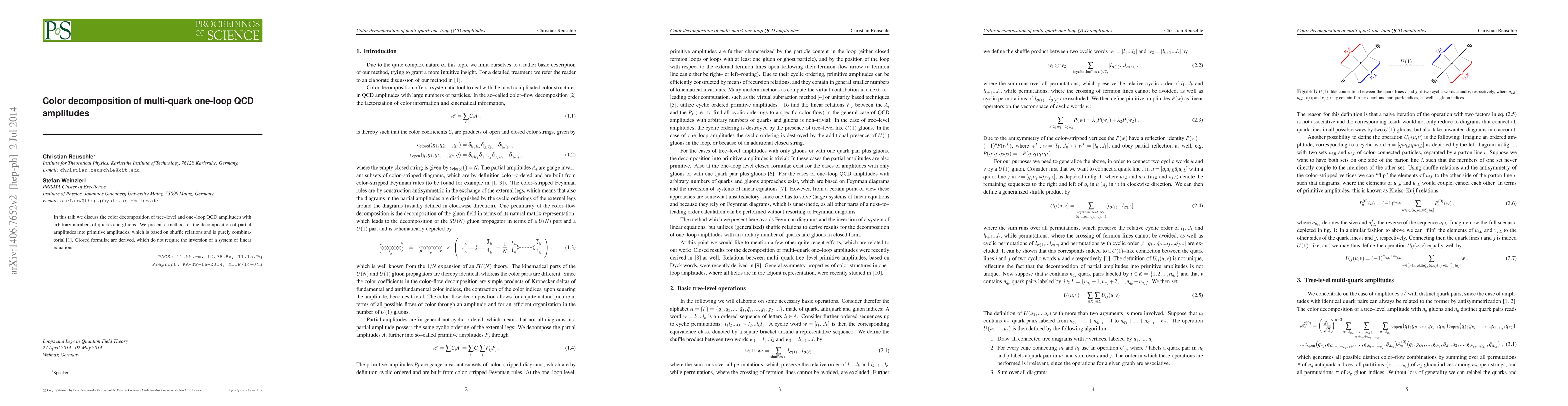 In this talk we discuss the color decomposition of tree-level and one-loop QCD amplitudes with arbitrary numbers of quarks and gluons. We present a method for the decomposition of partial amplitudes into primitive amplitudes, which is based on shuffle relations and is purely combinatorial. Closed formulae are derived, which do not require the inversion of a system of linear equations.