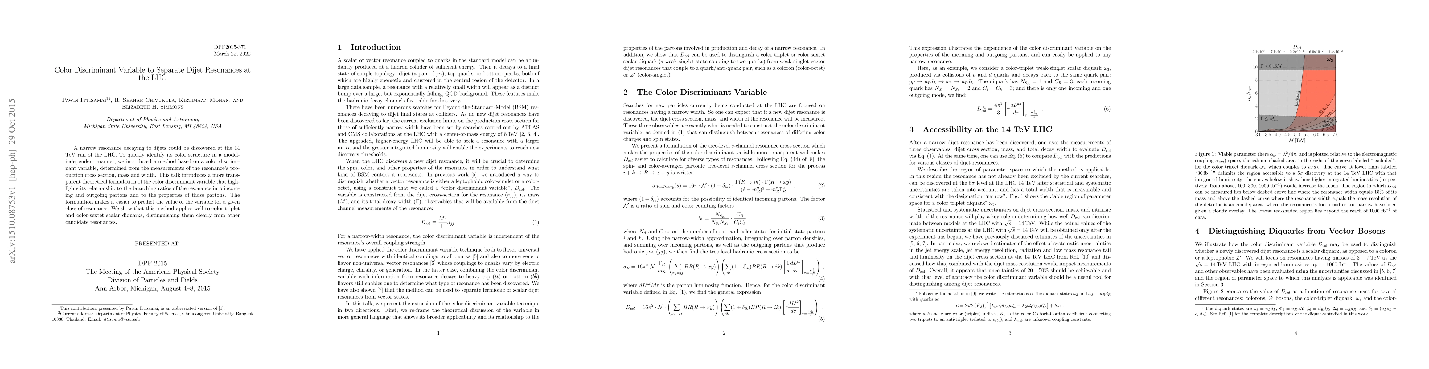 A narrow resonance decaying to dijets could be discovered at the 14 TeV run of the LHC. To quickly identify its color structure in a model-independent manner, we introduced a method based on a color discriminant variable, determined from the measurements of the resonance's production cross section, mass and width. This talk introduces a more transparent theoretical formulation of the color discriminant variable that highlights its relationship to the branching ratios of the resonance into incoming and outgoing partons and to the properties of those partons. The formulation makes it easier to predict the value of the variable for a given class of resonance. We show that this method applies well to color-triplet and color-sextet scalar diquarks, distinguishing them clearly from other candidate resonances.
