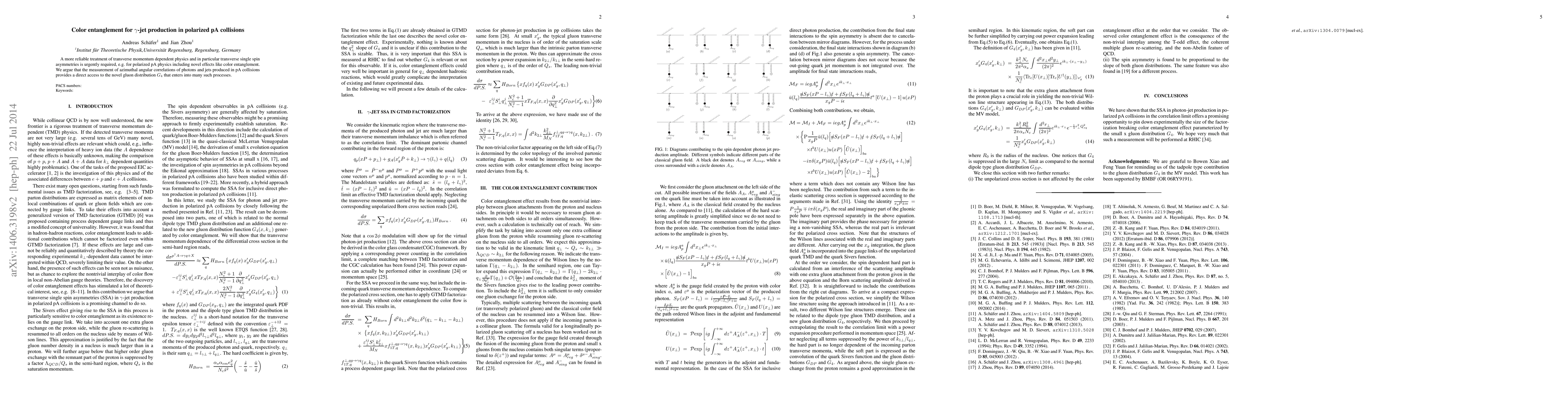 A more reliable treatment of transverse momentum dependent physics and in particular transverse single spin asymmetries is urgently required, e.g. for polarized pA physics including novel effects like color entanglement. We argue that the measurement of azimuthal angular correlations of photons and jets produced in pA collisions provides a direct access to the novel gluon distribution $G_4$ that enters into many such processes.