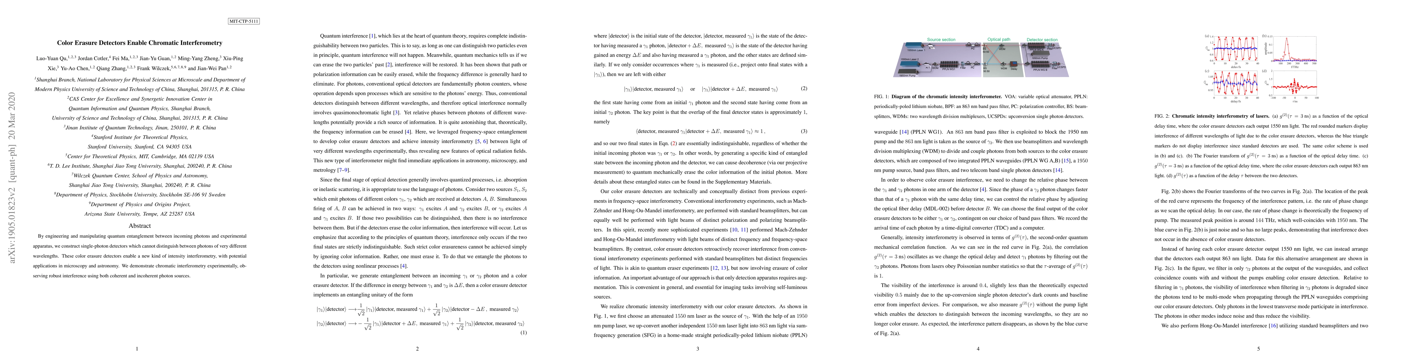 This research presents a unique approach to detector design by treating detectors as quantum mechanical objects that become entangled with the systems they measure, allowing for the erasure of color information and paving the way for chromatic interferometry.