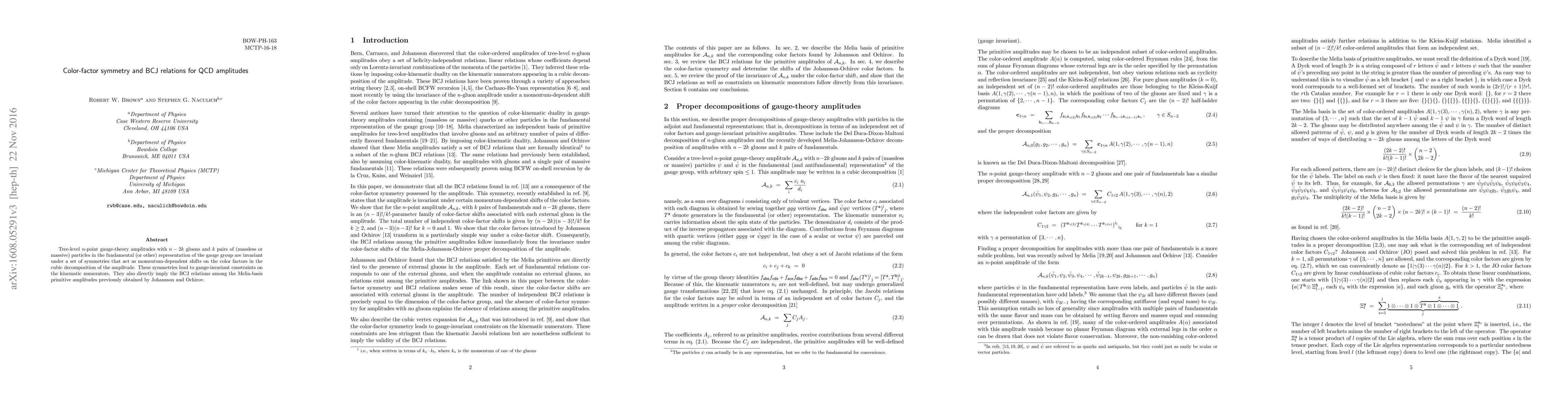 This paper explores symmetries in color-factor decompositions of tree-level QCD amplitudes, revealing momentum-dependent shifts that enforce gauge invariance and derive the BCJ relations among primitive amplitudes. These findings provide deeper insight into the underlying structure of gauge-theory calculations.