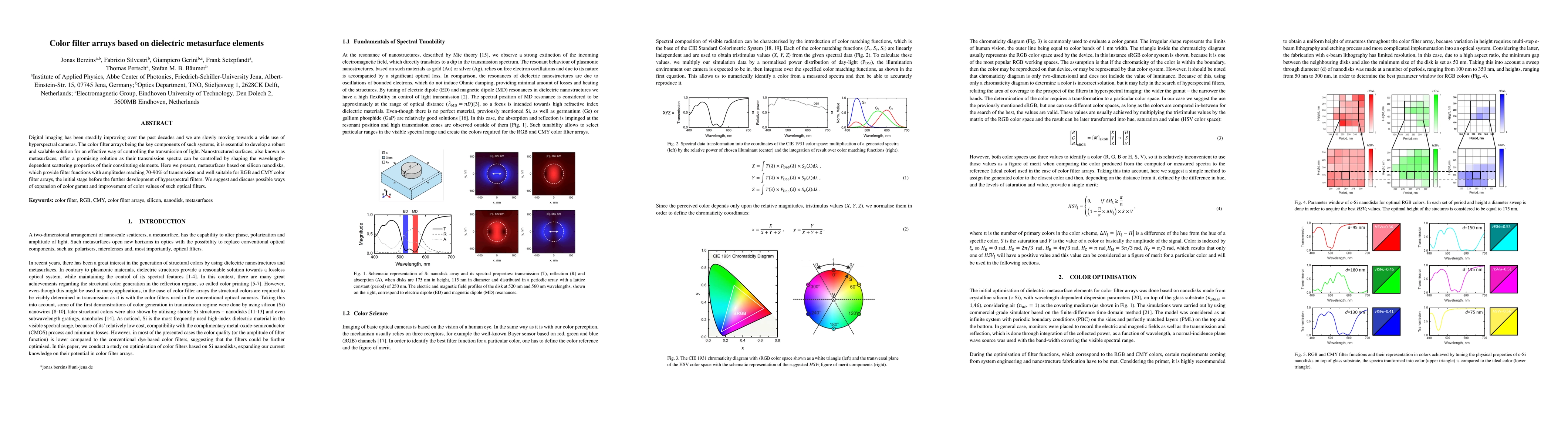 Researchers developed a color filter array using silicon nanodisks that can control light transmission with high accuracy, suitable for RGB and CMY color filters, advancing the development of hyperspectral filters.