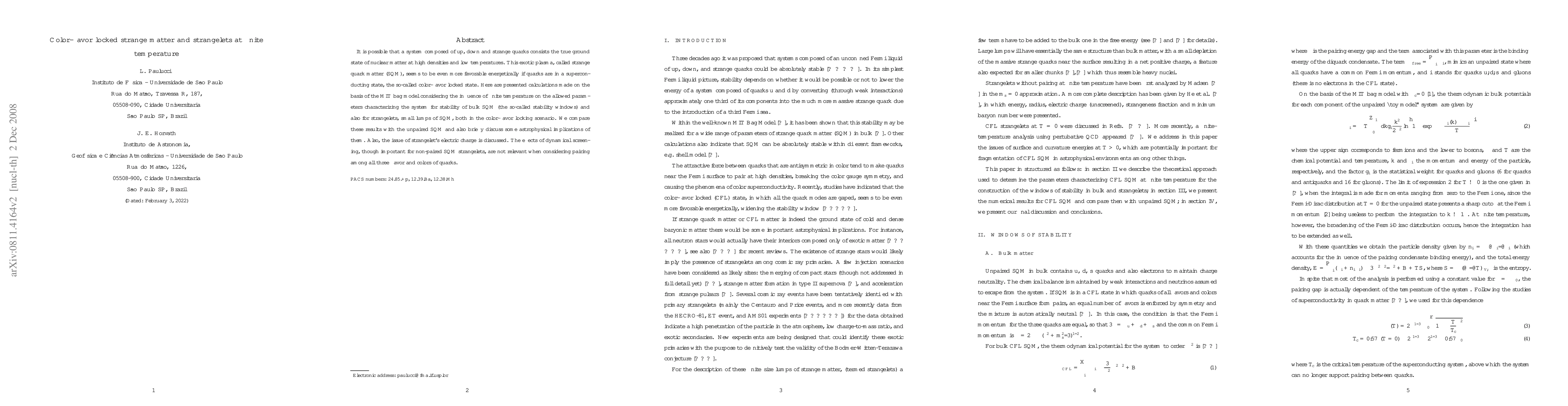 It is possible that a system composed of up, down and strange quarks consists the true ground state of nuclear matter at high densities and low temperatures. This exotic plasma, called strange quark matter (SQM), seems to be even more favorable energetically if quarks are in a superconducting state, the so-called color-flavor locked state. Here are presented calculations made on the basis of the MIT bag model considering the influence of finite temperature on the allowed parameters characterizing the system for stability of bulk SQM (the so-called stability windows) and also for strangelets, small lumps of SQM, both in the color-flavor locking scenario. We compare these results with the unpaired SQM and also briefly discuss some astrophysical implications of them. Also, the issue of strangelet's electric charge is discussed. The effects of dynamical screening, though important for non-paired SQM strangelets, are not relevant when considering pairing among all three flavor and colors of quarks.