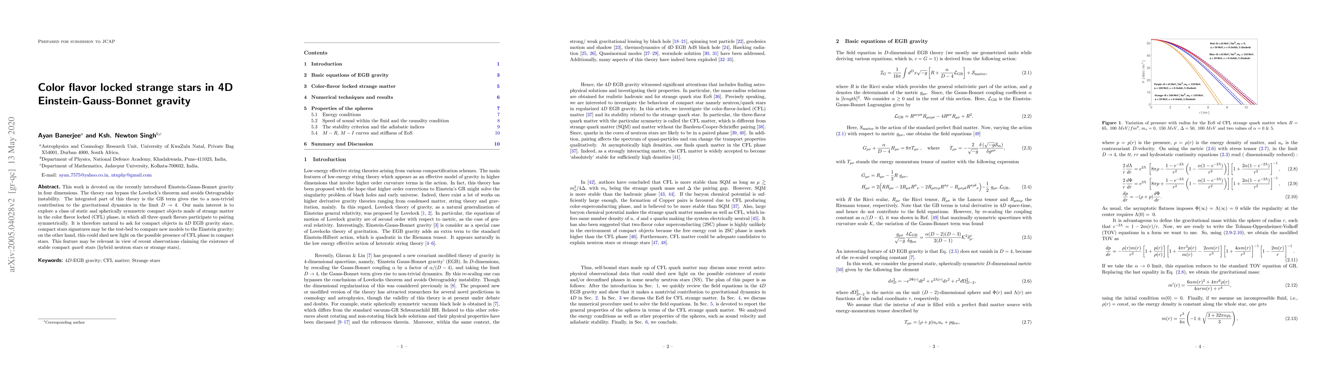 This paper investigates static and spherically symmetric strange stars composed of color flavor locked (CFL) quark matter in the context of 4D Einstein-Gauss-Bonnet gravity, exploring their properties and potential observational signatures to compare with Einstein gravity models.