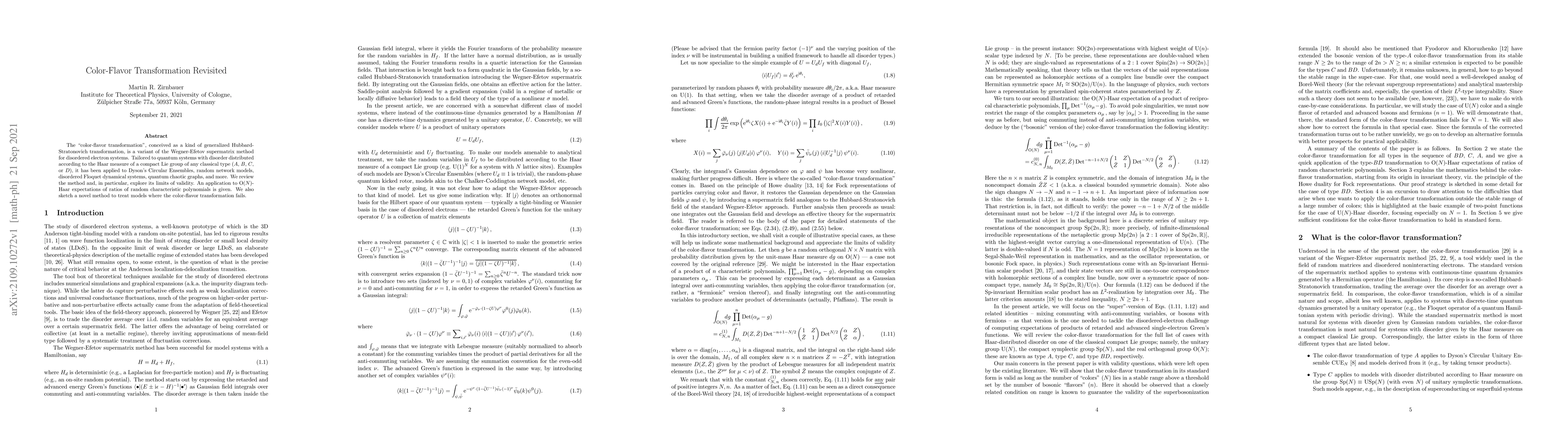 The "color-flavor transformation", conceived as a kind of generalized Hubbard-Stratonovich transformation, is a variant of the Wegner-Efetov supermatrix method for disordered electron systems. Tailored to quantum systems with disorder distributed according to the Haar measure of a compact Lie group of any classical type (A, B, C, or D), it has been applied to Dyson's Circular Ensembles, random network models, disordered Floquet dynamical systems, quantum chaotic graphs, and more. We review the method and, in particular, explore its limits of validity. An application to O(N)-Haar expectations of ratios of random characteristic polynomials is given. We also sketch a novel method to treat models where the color-flavor transformation fails.