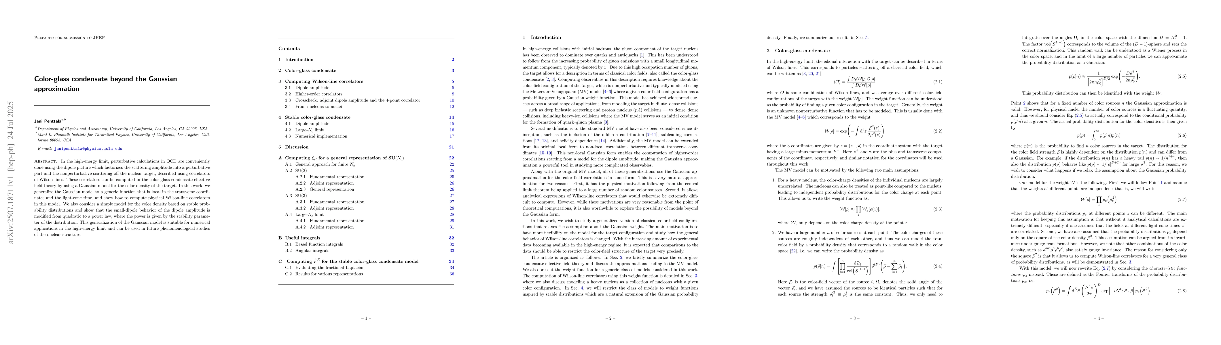 In the high-energy limit, perturbative calculations in QCD are conveniently done using the dipole picture which factorizes the scattering amplitude into a perturbative part and the nonperturbative scattering off the nuclear target, described using correlators of Wilson lines. These correlators can be computed in the color-glass condensate effective field theory by using a Gaussian model for the color density of the target. In this work, we generalize the Gaussian model to a generic function that is local in the transverse coordinates and the light-cone time, and show how to compute physical Wilson-line correlators in this model. We also consider a simple model for the color density based on stable probability distributions and show that the small-dipole behavior of the dipole amplitude is modified from quadratic to a power law, where the power is given by the stability parameter of the distribution. This generalization of the Gaussian model is suitable for numerical applications in the high-energy limit and can be used in future phenomenological studies of the nuclear structure.