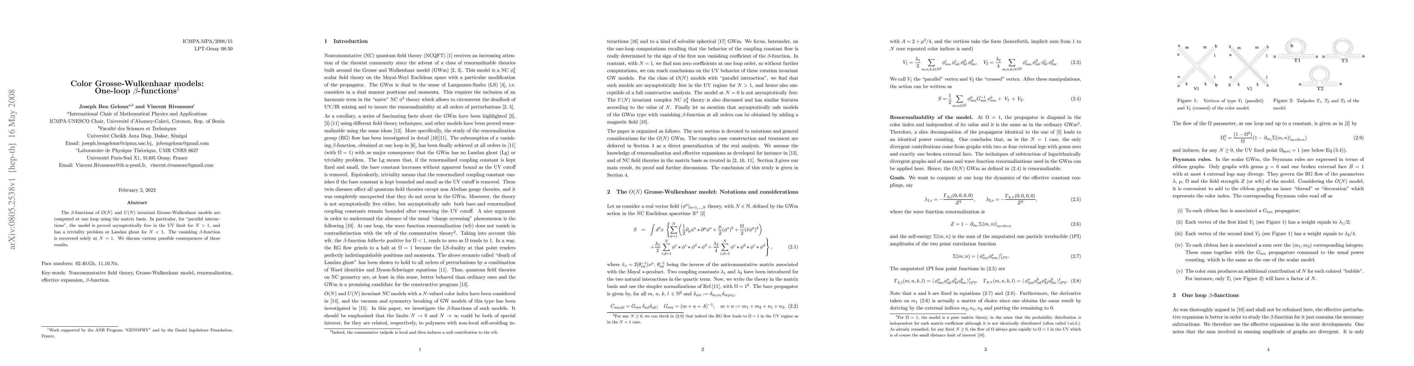 The $eta$-functions of O(N) and U(N) invariant Grosse-Wulkenhaar models are computed at one loop, revealing the model is asymptotically free for N > 1, but has a triviality problem for N < 1.