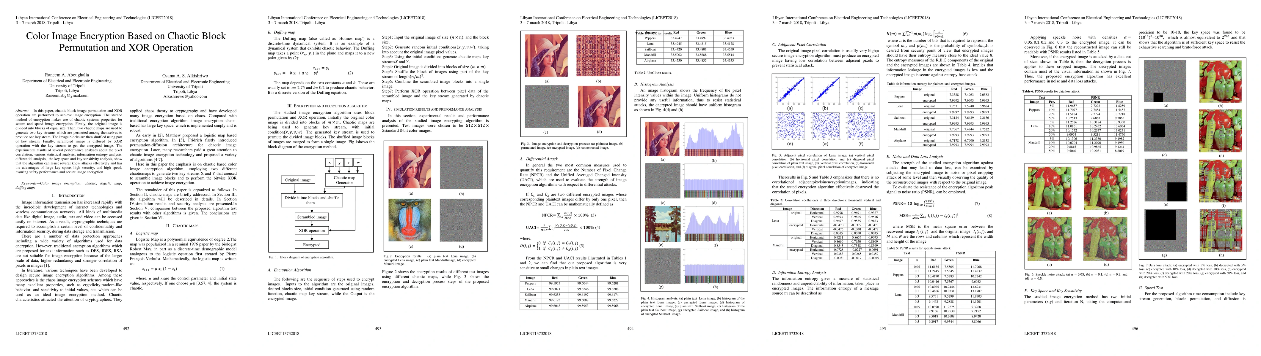 This paper proposes an image encryption method using chaotic block permutation and XOR operations, combining two chaotic maps to generate key streams for shuffling and scrambling image blocks. Experimental results demonstrate high security, large key space, and fast encryption, effectively resisting known attacks.