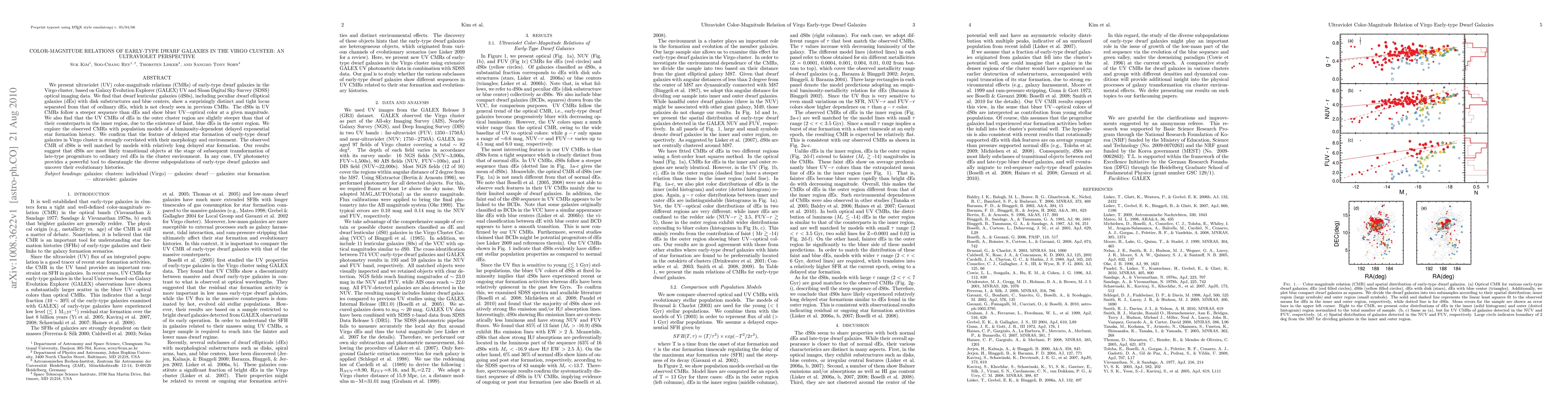This study finds that dwarf lenticular galaxies in the Virgo cluster have a unique ultraviolet color-magnitude relation distinct from ordinary elliptical galaxies, suggesting they may be transitional objects between late-type progenitors and ordinary red dwarfs.