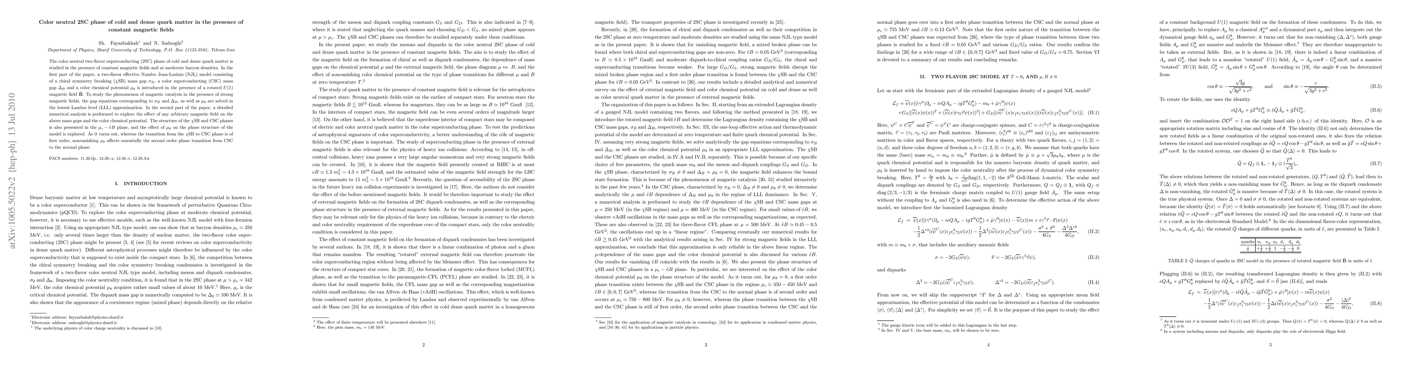 This paper investigates the color neutral two-flavor superconducting (2SC) phase of cold, dense quark matter under constant magnetic fields using an effective Nambu-Jona-Lasinio model. The study reveals that magnetic catalysis influences the chiral symmetry breaking and color superconductivity phases, with nonvanishing color neutrality coefficients affecting the phase transition.