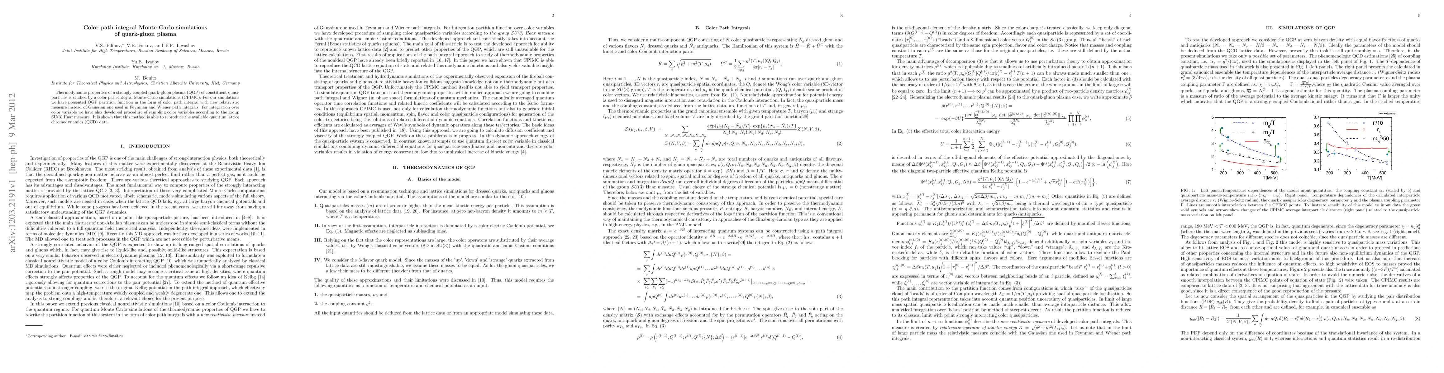 This paper presents color path-integral Monte Carlo simulations to study the thermodynamic properties of a strongly coupled quark-gluon plasma. The authors develop a new relativistic measure and a sampling procedure for color variables, which successfully reproduces existing quantum lattice chromodynamics data.