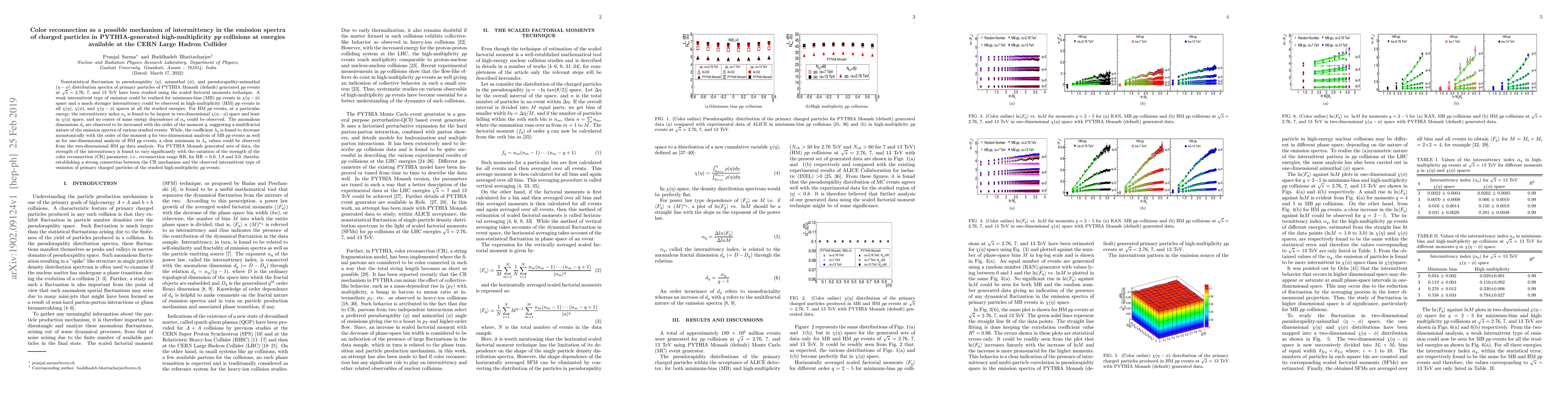 Researchers investigated color reconnection as a mechanism for intermittency in high-energy particle collisions at the CERN Large Hadron Collider, finding that it significantly affects emission spectra of charged particles.