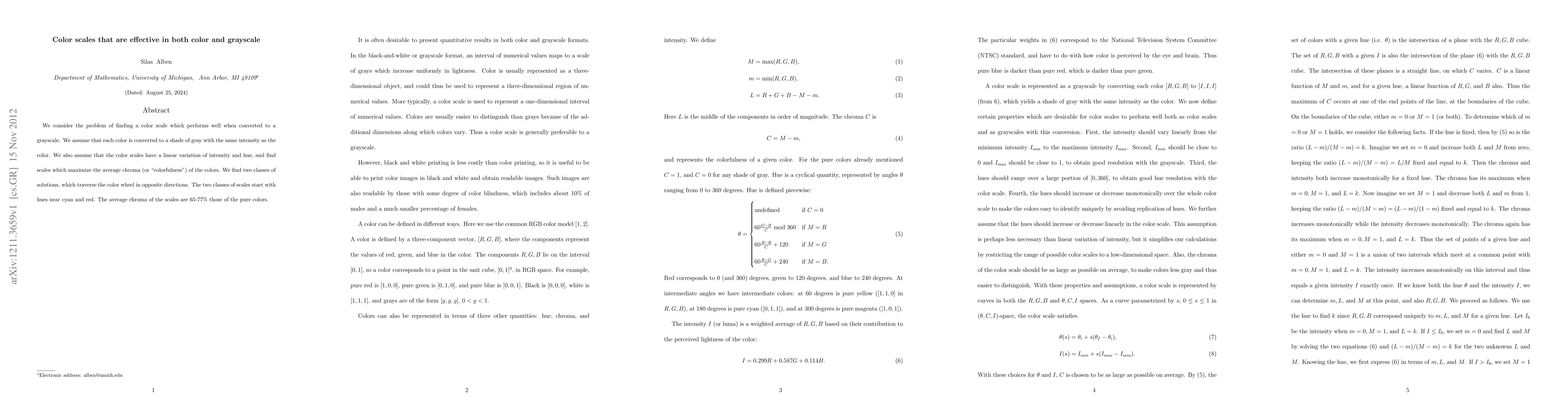 We consider the problem of finding a color scale which performs well when converted to a grayscale. We assume that each color is converted to a shade of gray with the same intensity as the color. We also assume that the color scales have a linear variation of intensity and hue, and find scales which maximize the average chroma (or "colorfulness") of the colors. We find two classes of solutions, which traverse the color wheel in opposite directions. The two classes of scales start with hues near cyan and red. The average chroma of the scales are 65-77% those of the pure colors.