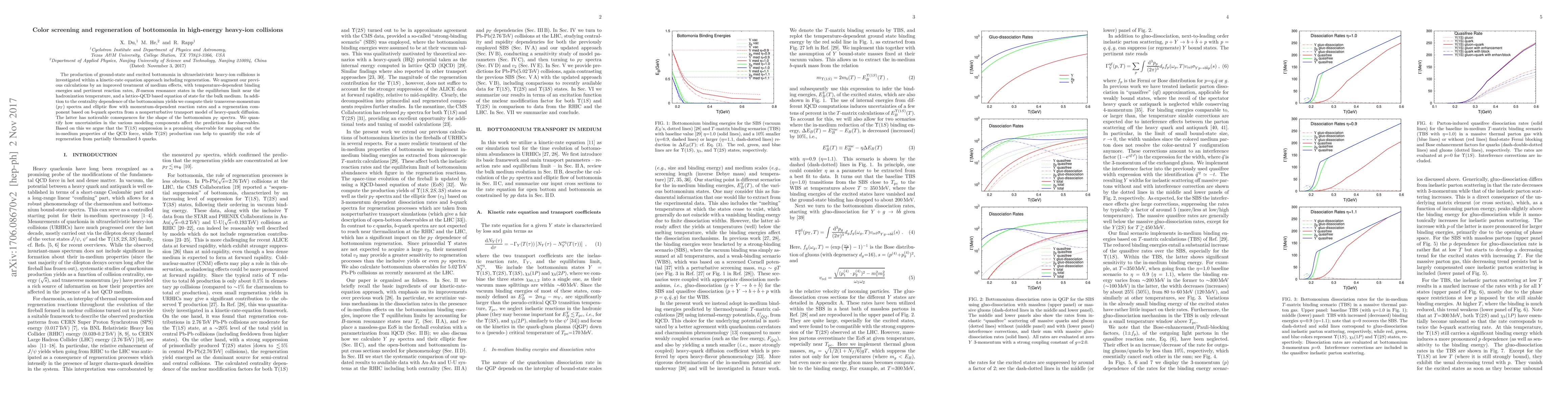 This paper investigates the production and regeneration of bottomonia in high-energy heavy-ion collisions using a kinetic-rate equation approach, incorporating improved medium effects and a lattice-QCD based equation of state. It finds that $\Upsilon(1S)$ suppression can reveal QCD force properties, while $\Upsilon(2S)$ production aids in understanding regeneration from thermalized $b$ quarks.