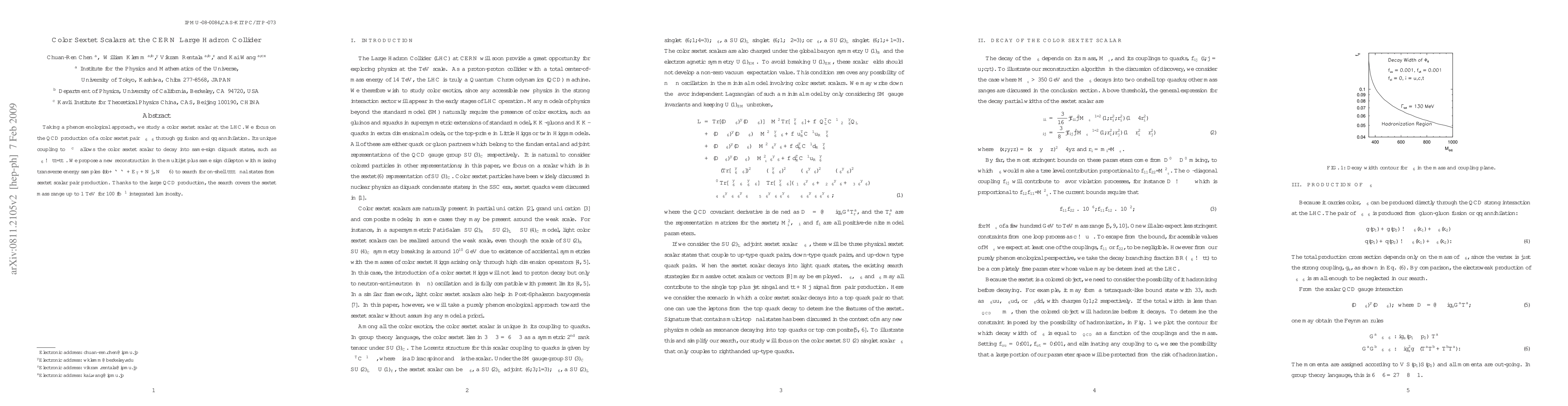 Taking a phenomenological approach, we study a color sextet scalar at the LHC. We focus on the QCD production of a color sextet pair \Phi_6\bar{\Phi}_{6} through gg fusion and q\bar{q} annihilation. Its unique coupling to \bar{\psi^c}\psi allows the color sextet scalar to decay into same-sign diquark states, such as \Phi_6\to tt/tt^*. We propose a new reconstruction in the multijet plus same sign dilepton with missing transverse energy samples to search for on-shell tt\bar{t}\bar{t} final states from sextet scalar pair production. Thanks to the large QCD production, the search covers the sextet mass range up to 1 TeV for 100 fb^-1 integrated luminosity.