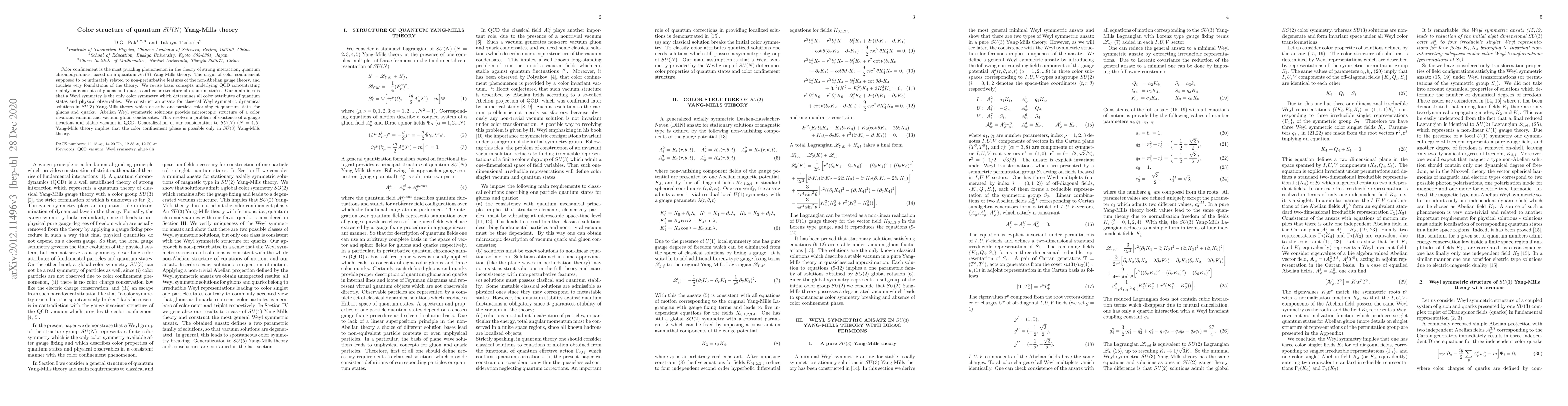 Color confinement is the most puzzling phenomenon in the theory of strong interaction based on a quantum SU(3) Yang-Mills theory. The origin of color confinement supposed to be intimately related to non-perturbative features of the non-Abelian gauge theory, and touches very foundations of the theory. We revise basic concepts underlying QCD concentrating mainly on concepts of gluons and quarks and color structure of quantum states. Our main idea is that a Weyl symmetry is the only color symmetry which determines all color attributes of quantum states and physical observables. We construct an ansatz for classical Weyl symmetric dynamical solutions in SU(3) Yang-Mills theory which describe one particle color singlet quantum states for gluons and quarks. Abelian Weyl symmetric solutions provide microscopic structure of a color invariant vacuum and vacuum gluon condensates. This resolves a problem of existence of a gauge invariant and stable vacuum in QCD. Generalization of our consideration to SU(N) (N=4,5) Yang-Mills theory implies that the color confinement phase is possible only in SU(3) Yang-Mills theory.