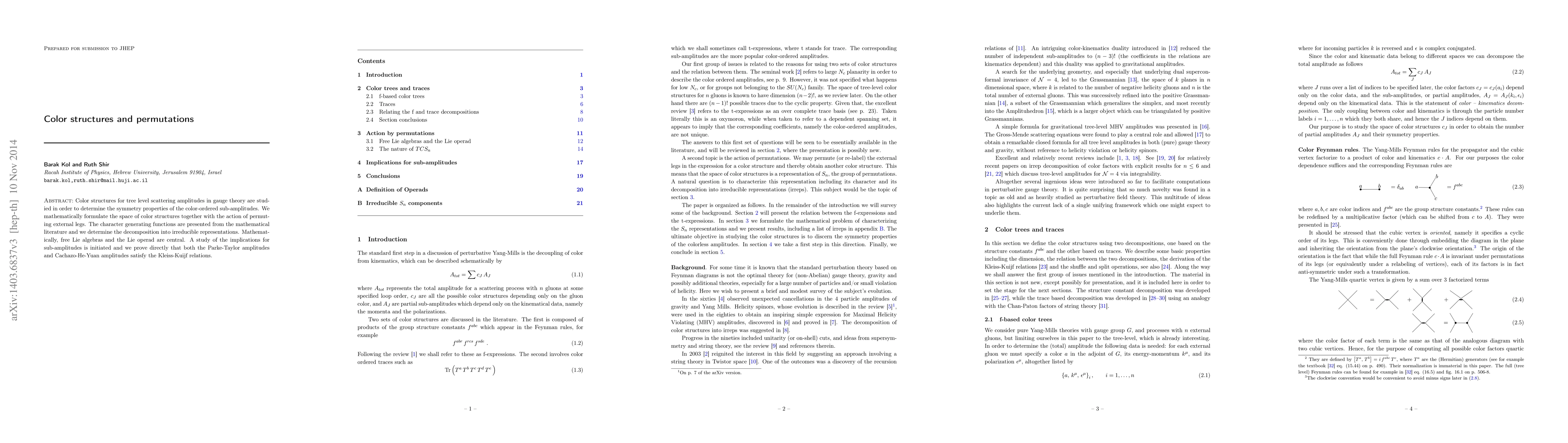 Color structures for tree level scattering amplitudes in gauge theory are studied in order to determine the symmetry properties of the color-ordered sub-amplitudes. We mathematically formulate the space of color structures together with the action of permuting external legs. The character generating functions are presented from the mathematical literature and we determine the decomposition into irreducible representations. Mathematically, free Lie algebras and the Lie operad are central. A study of the implications for sub-amplitudes is initiated and we prove directly that both the Parke-Taylor amplitudes and Cachazo-He-Yuan amplitudes satisfy the Kleiss-Kuijf relations.