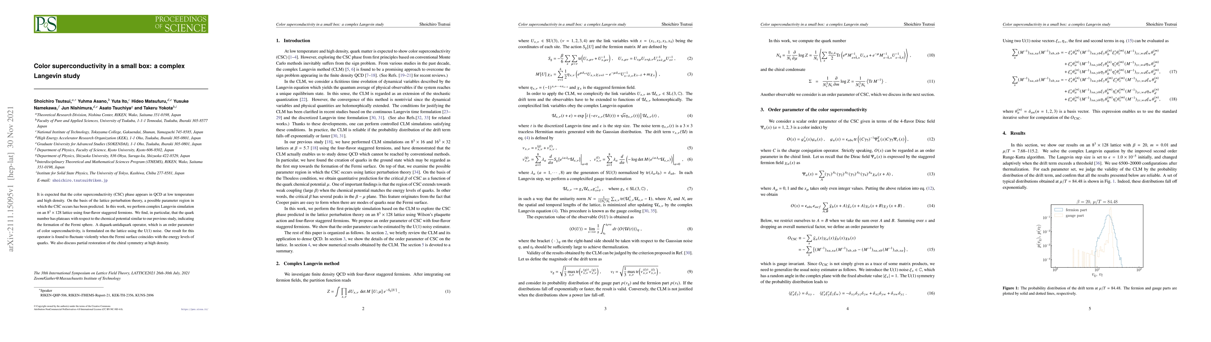 Researchers used complex Langevin simulations to study color superconductivity in a small lattice, finding that a key operator related to the phenomenon fluctuates violently when the Fermi surface coincides with quark energy levels.