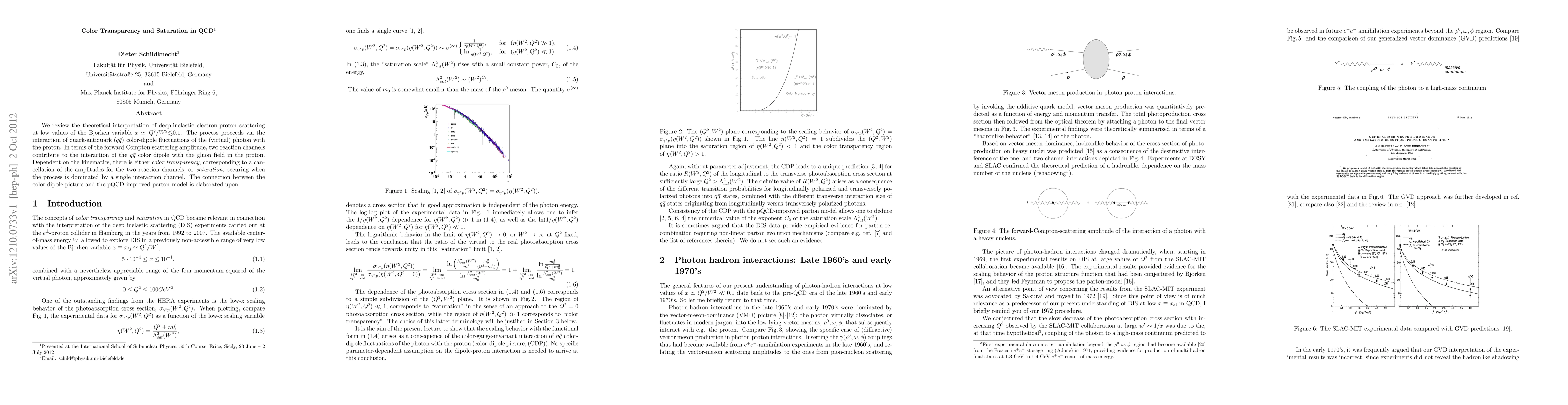 We review the theoretical interpretation of deep-inelastic electron-proton scattering at low values of the Bjorken variable $x \simeq Q^2/W^2 \lsim 0.1$. The process proceeds via the interaction of quark-antiquark $(q \bar q)$ color-dipole fluctuations of the (virtual) photon with the proton. In terms of the forward Compton scattering amplitude, two reaction channels contribute to the interaction of the $q \bar q$ color dipole with the gluon field in the proton. Dependent on the kinematics, there is either {\it color transparency}, corresponding to a cancellation of the amplitudes for the two reaction channels, or {\it saturation}, occuring when the process is dominated by a single interaction channel. The connection between the color-dipole picture and the pQCD improved parton model is elaborated upon.