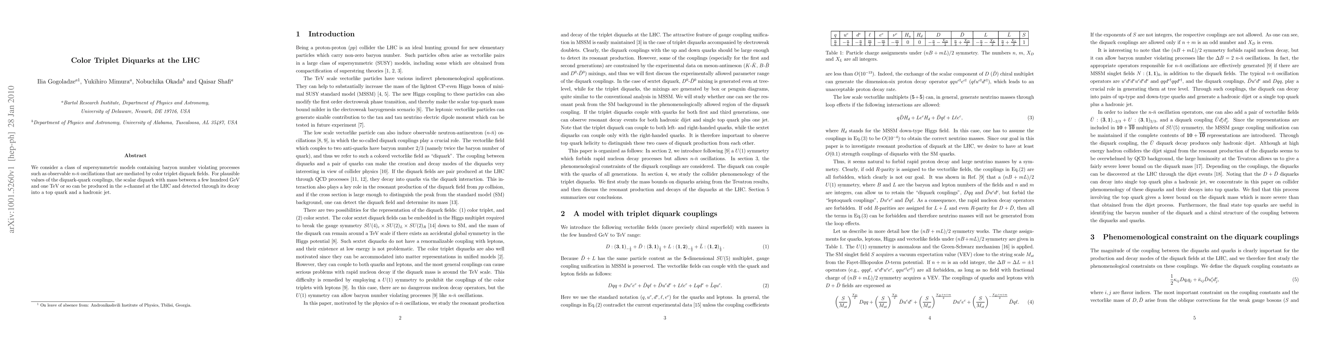 This paper explores supersymmetric models with color triplet diquarks that mediate baryon-violating processes like neutron-antineutron oscillations. It predicts that these diquarks, with masses between 300 GeV and 1 TeV, can be produced at the LHC and detected via decay into a top quark and a hadronic jet.