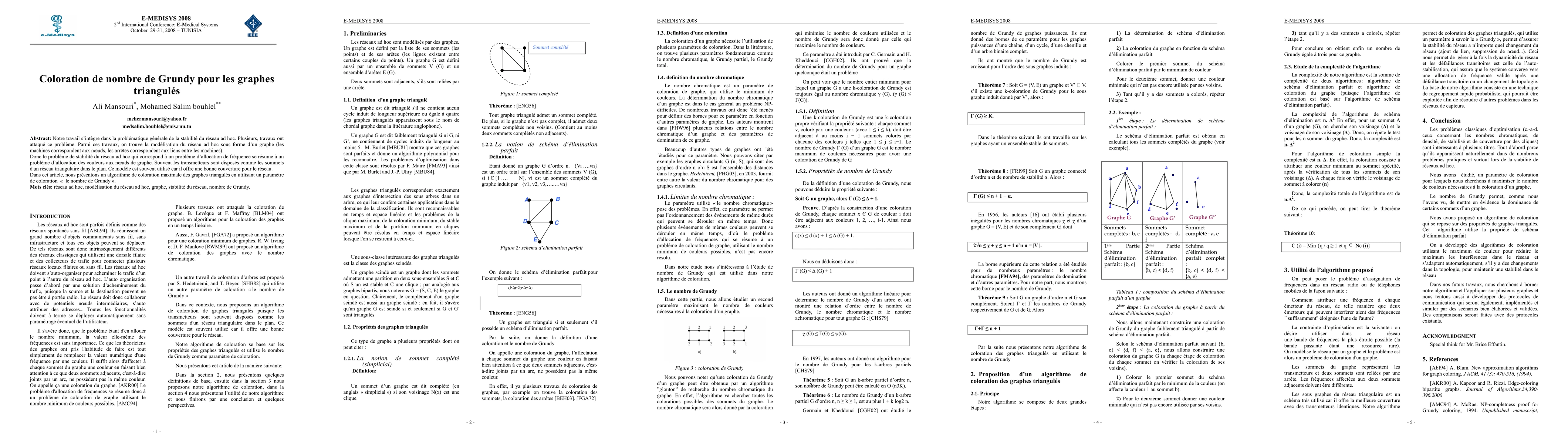 The problem of the data routing management, it provides a method or a strategy that guarantees at any time the connection between any pair of nodes in the network. This routing method must be able to cope with frequent changes in the topology and also other characteristics of the ad hoc network as bandwidth, the number of links, network resources etc.. We also illustrate the utility of the proposed algorithms: the problem of assignment or frequency allotment in a radio network or mobile phones as in the following way: how to attribute a frequency to every transmitter(issuer) or an unity(unit) of the network, so that two broadcasting stations (issuers) which can interfere have frequencies distant enough from each other ? Thus to affect the wavelengths means finding a coloring of the graph, but because the network is not stable and the topology is dynamic, we need a method which maintains the initial allocation of the frequencies or to look for a new allocation to maintain the stability of the network.
