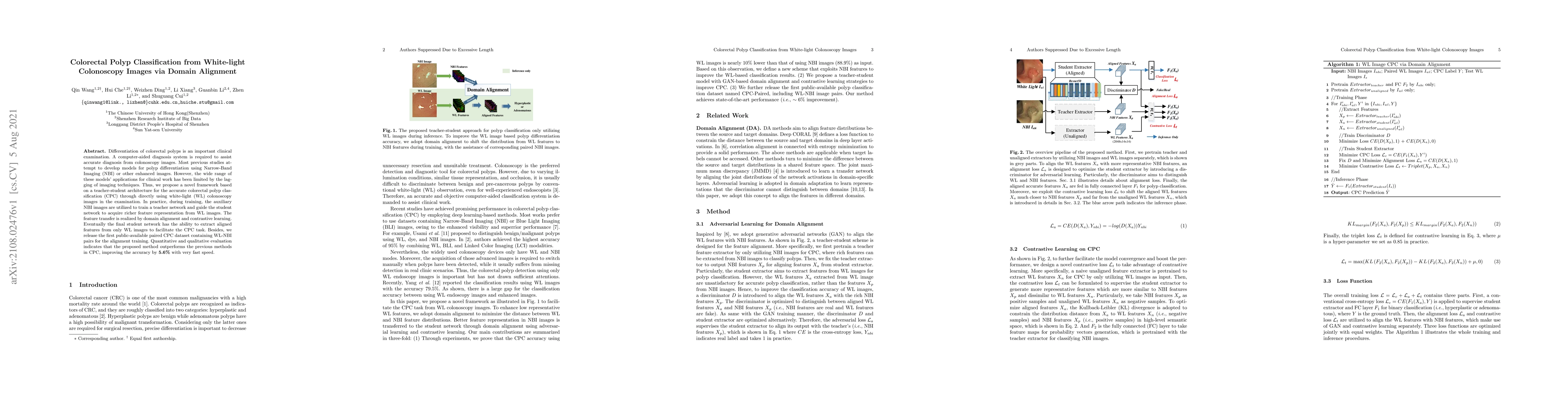 A new method for classifying colorectal polyps from white-light colonoscopy images has been developed using domain alignment and contrastive learning, improving accuracy by 5.6% compared to previous methods.