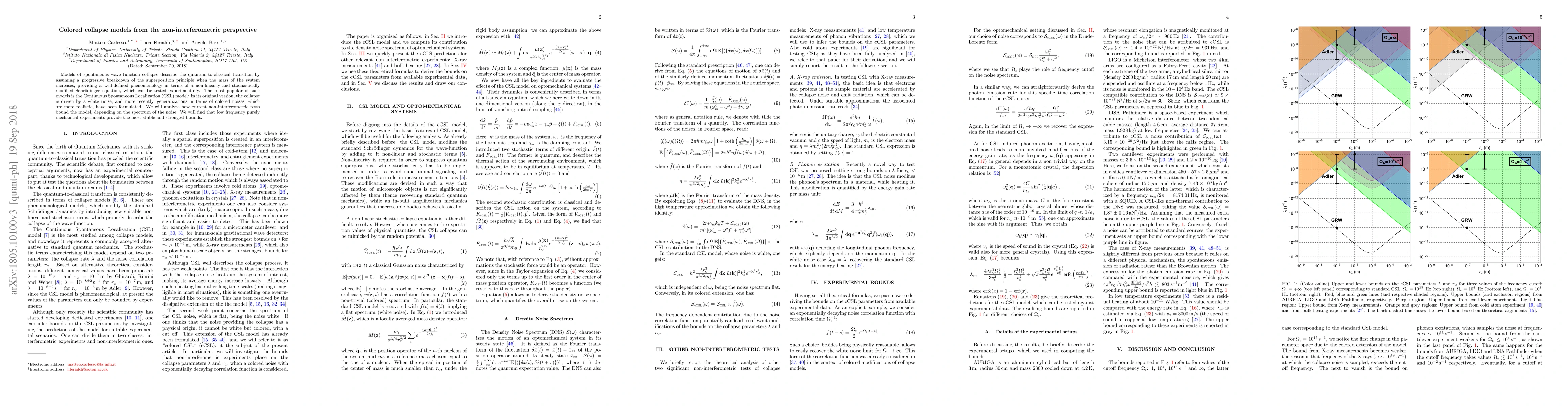 This paper examines colored collapse models, which generalize the Continuous Spontaneous Localization (CSL) model by incorporating more realistic colored noise instead of white noise. It investigates how non-interferometric tests, particularly low-frequency mechanical experiments, provide the strongest constraints on these models.