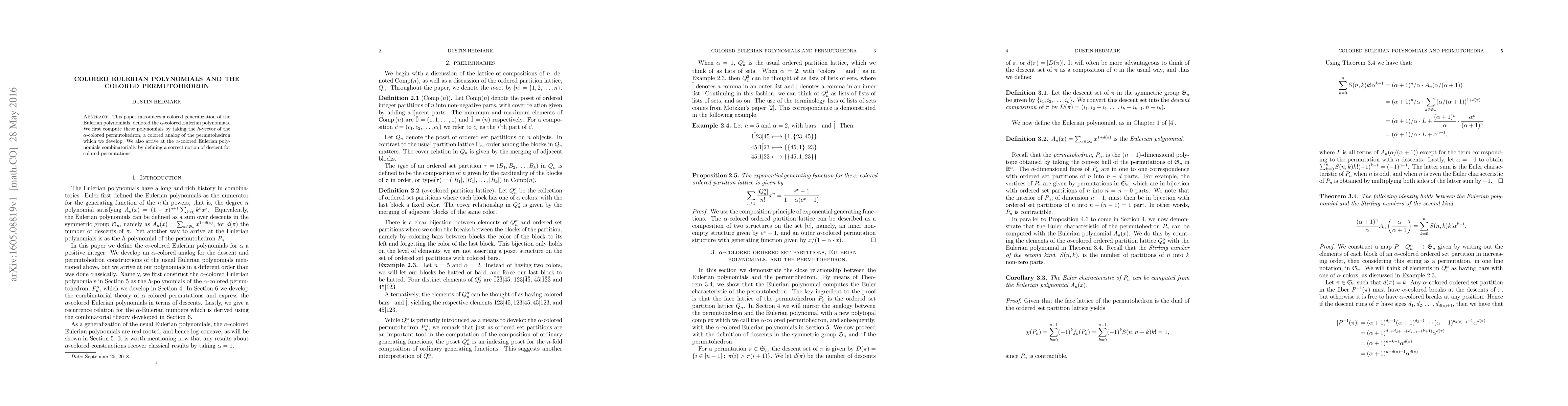 This paper develops $\alpha$-colored Eulerian polynomials by analyzing the $h$-vector of the $\alpha$-colored permutohedron, and also defines a new descent notion for colored permutations to arrive at these polynomials combinatorially.