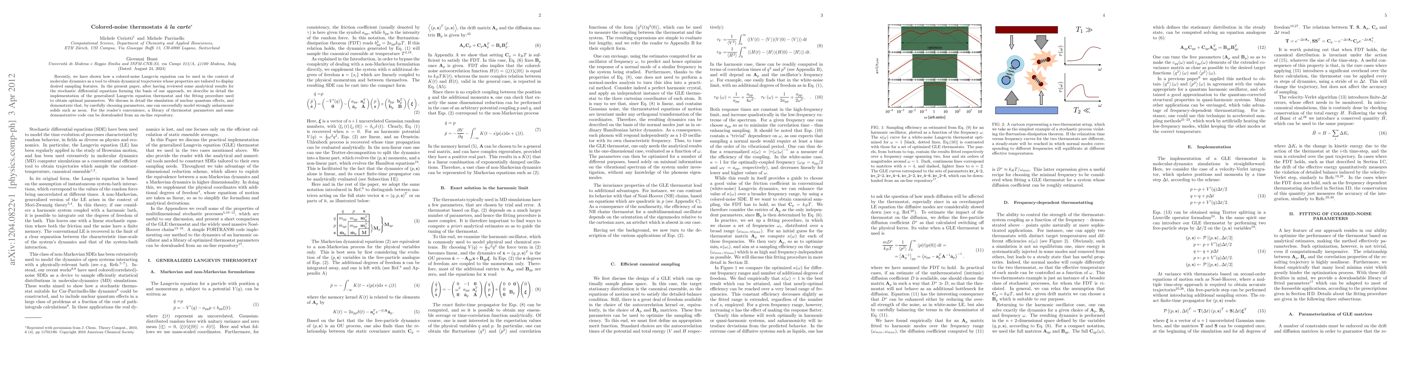 Recently, we have shown how a colored-noise Langevin equation can be used in the context of molecular dynamics as a tool to obtain dynamical trajectories whose properties are tailored to display desired sampling features. In the present paper, after having reviewed some analytical results for the stochastic differential equations forming the basis of our approach, we describe in detail the implementation of the generalized Langevin equation thermostat and the fitting procedure used to obtain optimal parameters. We discuss in detail the simulation of nuclear quantum effects, and demonstrate that, by carefully choosing parameters, one can successfully model strongly anharmonic solids such as neon. For the reader's convenience, a library of thermostat parameters and some demonstrative code can be downloaded from an on-line repository.