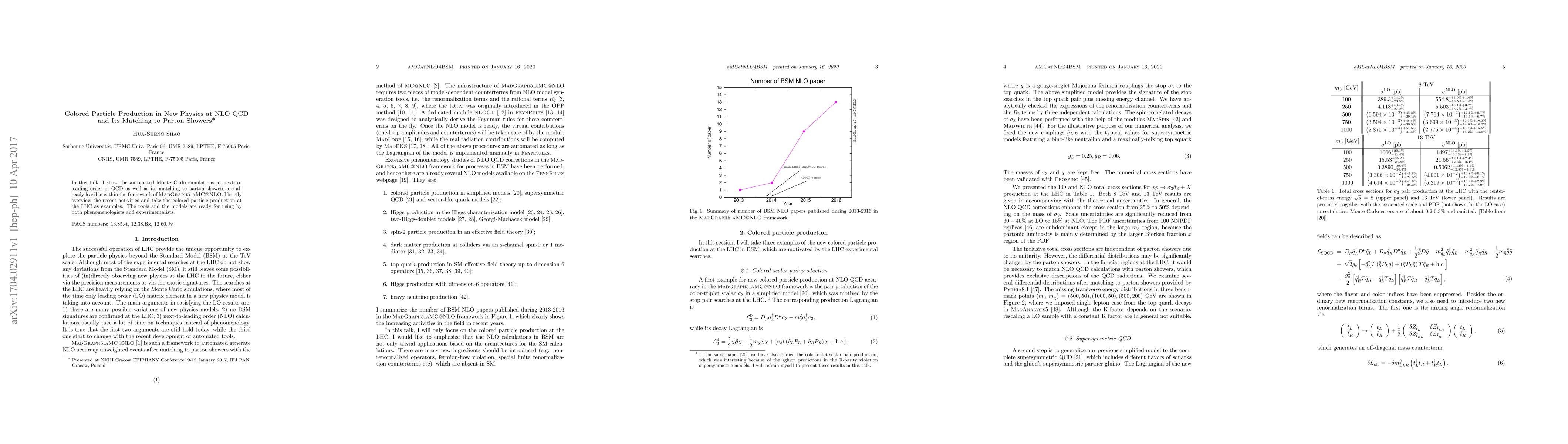 In this talk, I show the automated Monte Carlo simulations at next-to-leading order in QCD as well as its matching to parton showers are already feasible within the framework of \MG5aMC. I briefly overview the recent activities and take the colored particle production at the LHC as examples. The tools and the models are ready for using by both phenomenologists and experimentalists.