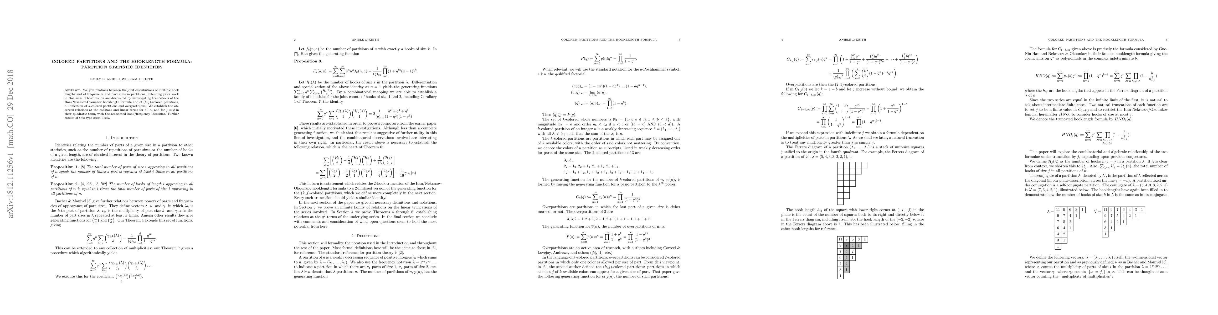 We give relations between the joint distributions of multiple hook lengths and of frequencies and part sizes in partitions, extending prior work in this area. These results are discovered by investigating truncations of the Han/Nekrasov-Okounkov hooklength formula and of (k,j)-colored partitions, a unification of k-colored partitions and overpartitions. We establish the observed relations at the constant and linear terms for all n, and for j=2 in their quadratic term, with the associated hook/frequency identities. Further results of this type seem likely.