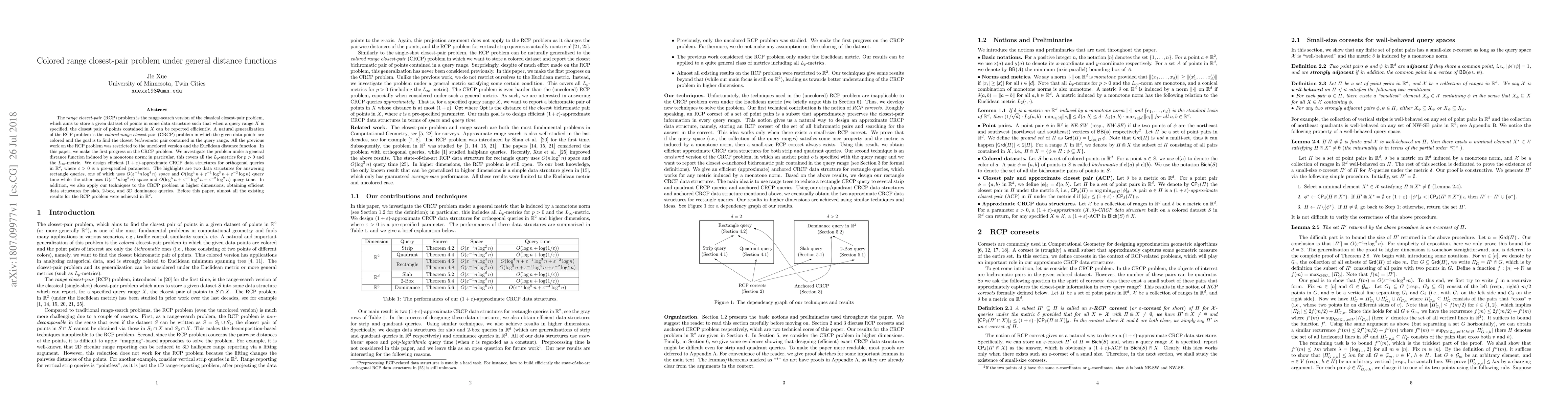 Researchers developed efficient data structures for finding closest bichromatic pairs in colored point sets under general distance functions, improving upon existing results for the range closest-pair problem.