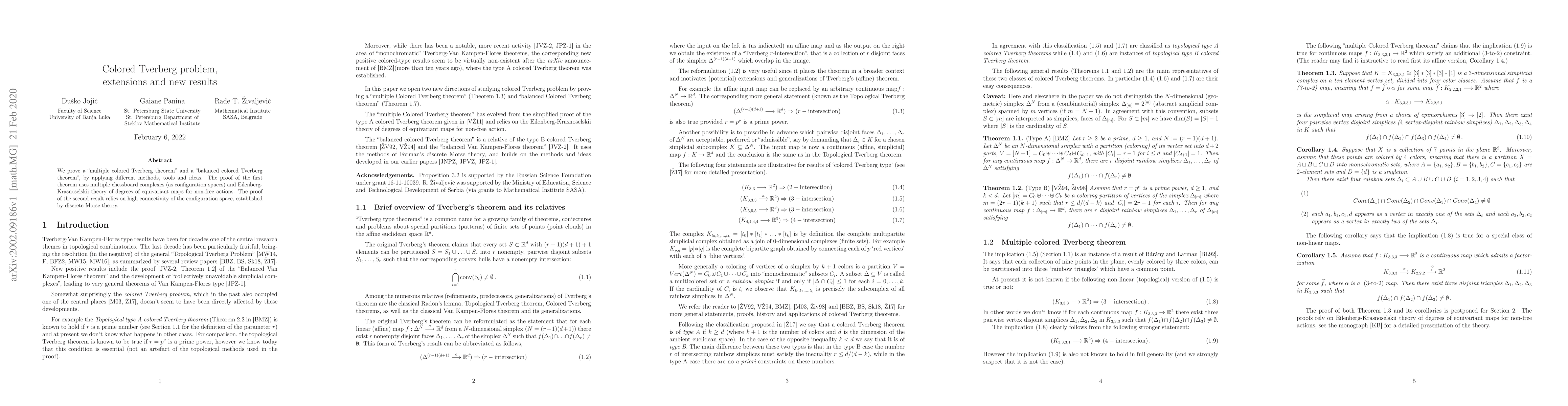 The paper proves two new colored Tverberg theorems: one using multiple chessboard complexes and Eilenberg-Krasnoselskii theory, and another leveraging high connectivity from discrete Morse theory.