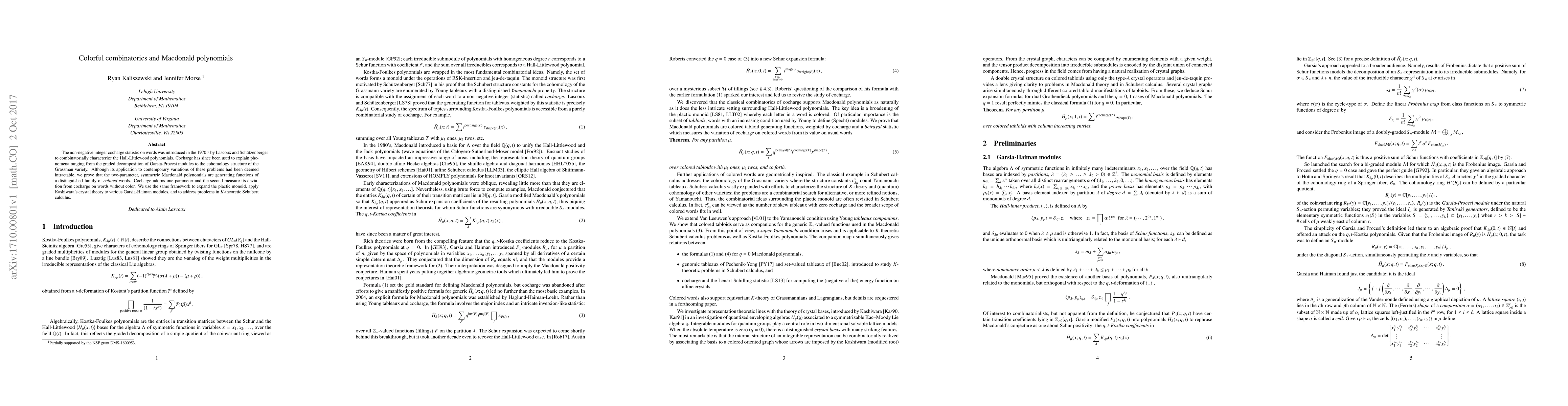 The non-negative integer cocharge statistic on words was introduced in the 1970's by Lascoux and Sch\"utzenberger to combinatorially characterize the Hall-Littlewood polynomials. Cocharge has since been used to explain phenomena ranging from the graded decomposition of Garsia-Procesi modules to the cohomology structure of the Grassman variety. Although its application to contemporary variations of these problems had been deemed intractable, we prove that the two-parameter, symmetric Macdonald polynomials are generating functions of a distinguished family of colored words. Cocharge adorns one parameter and the second measures its deviation from cocharge on words without color. We use the same framework to expand the plactic monoid, apply Kashiwara's crystal theory to various Garsia-Haiman modules, and to address problems in K-theoretic Schubert calculus.