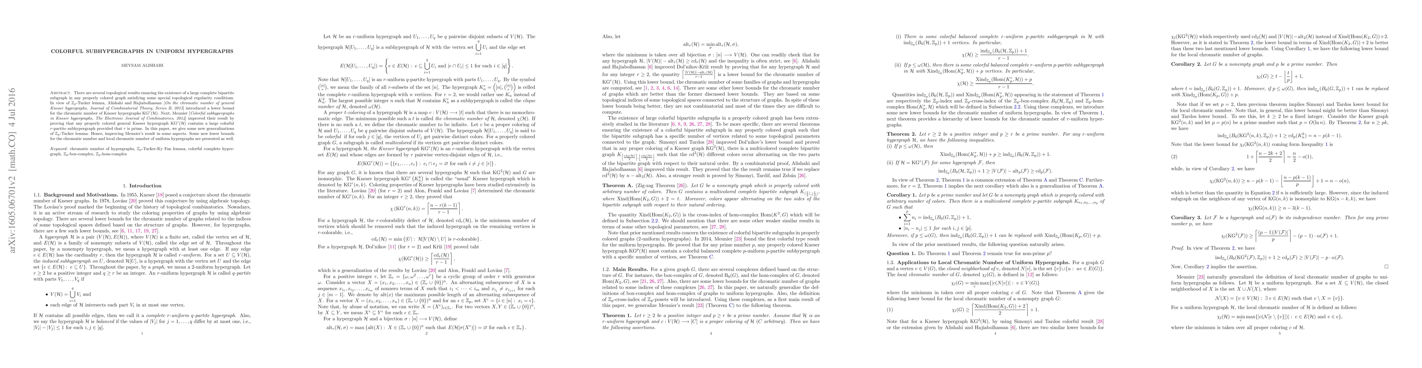 This paper generalizes the $\mathbb{Z}_p$-Tucker lemma and improves on previous results regarding colorful subhypergraphs in Kneser hypergraphs, presenting new lower bounds for the chromatic and local chromatic numbers of uniform hypergraphs.