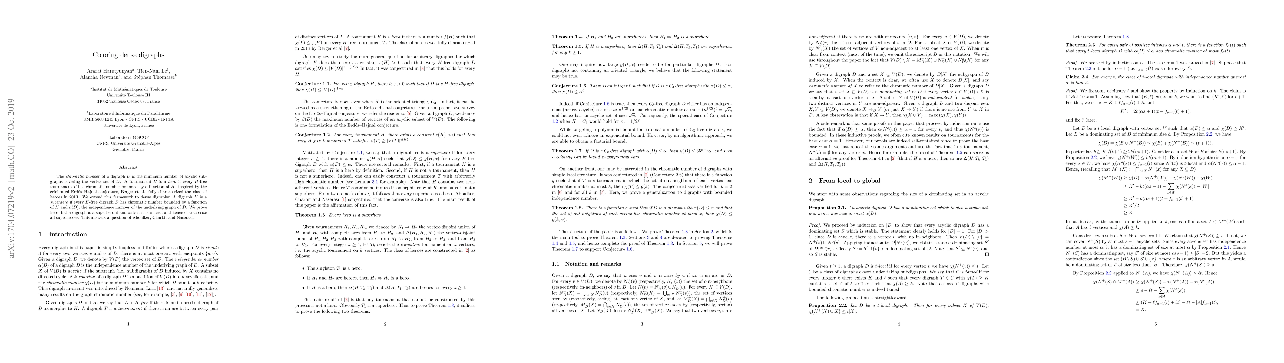 This paper extends the concept of "heroes" in tournaments to dense digraphs, defining "superheroes" as digraphs whose free counterparts have a chromatic number bounded by a function of the superhero and the independence number of the underlying graph. The authors prove that a digraph is a superhero if and only if it is a hero, fully characterizing the class of superheroes.