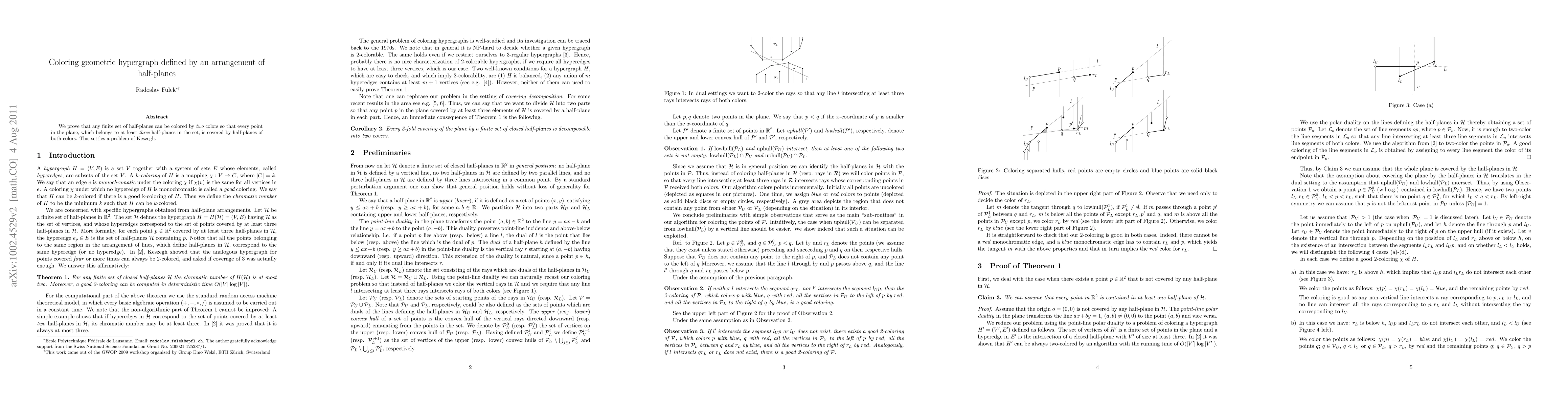 We prove that any finite set of half-planes can be colored by two colors so that every point of the plane, which belongs to at least three half-planes in the set, is covered by half-planes of both colors. This settles a problem of Keszegh.