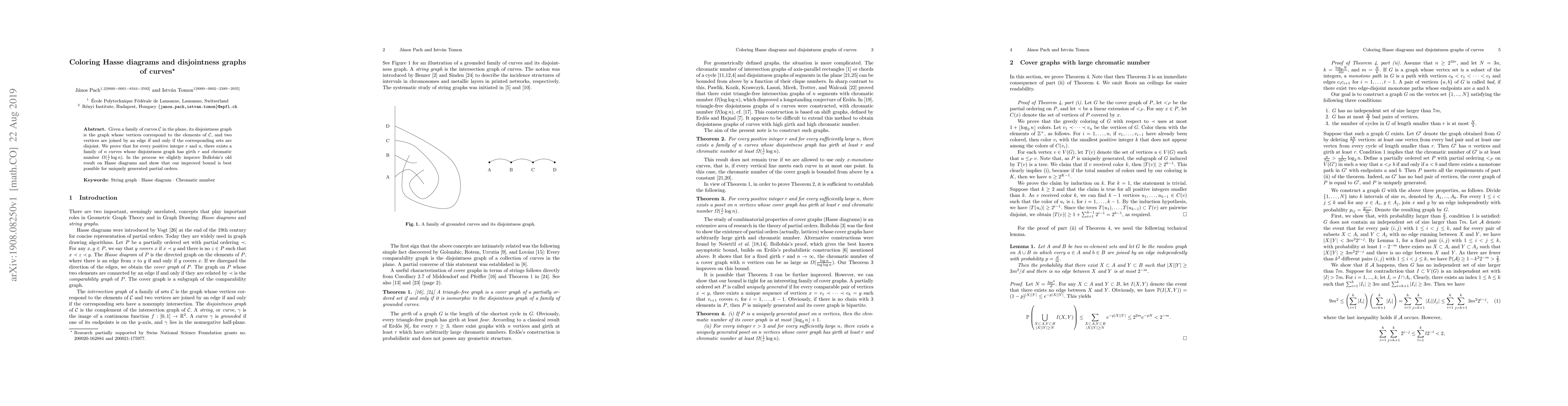 This paper proves the existence of a family of $n$ curves whose disjointness graph has a specified girth $r$ and a chromatic number of $\Omega(\frac{1}{r}\log n)$. It also improves upon a previous result regarding the coloring of Hasse diagrams and demonstrates the optimality of the improved bound for uniquely generated partial orders.