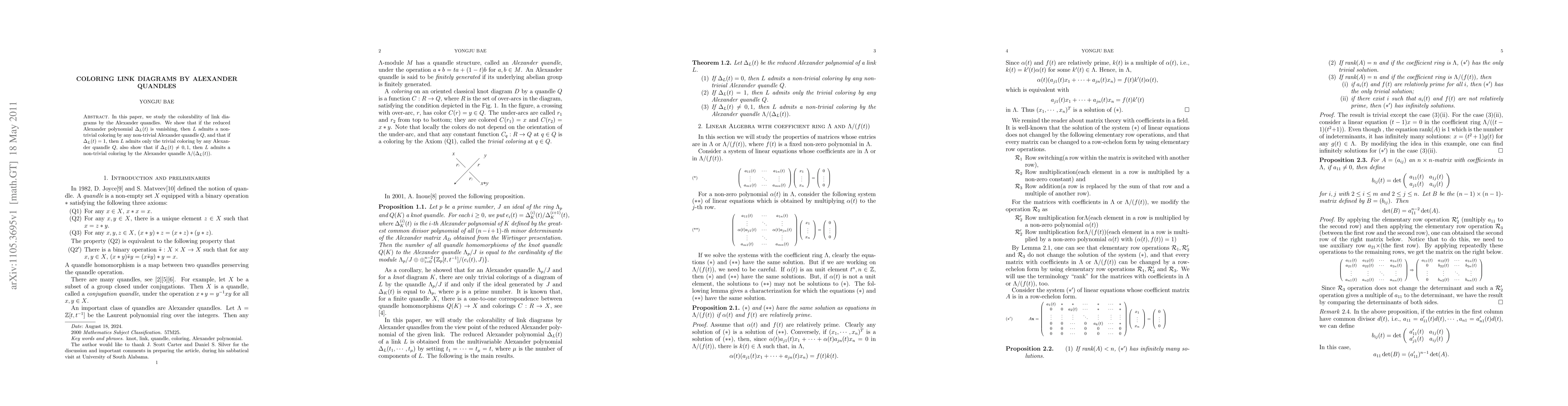 This paper investigates the colorability of link diagrams using Alexander quandles. It demonstrates that if the reduced Alexander polynomial vanishes, any non-trivial Alexander quandle can color the link non-trivially, while a non-vanishing polynomial not equal to 1 allows coloring by $\Lambda/(\Delta_{L}(t))$.