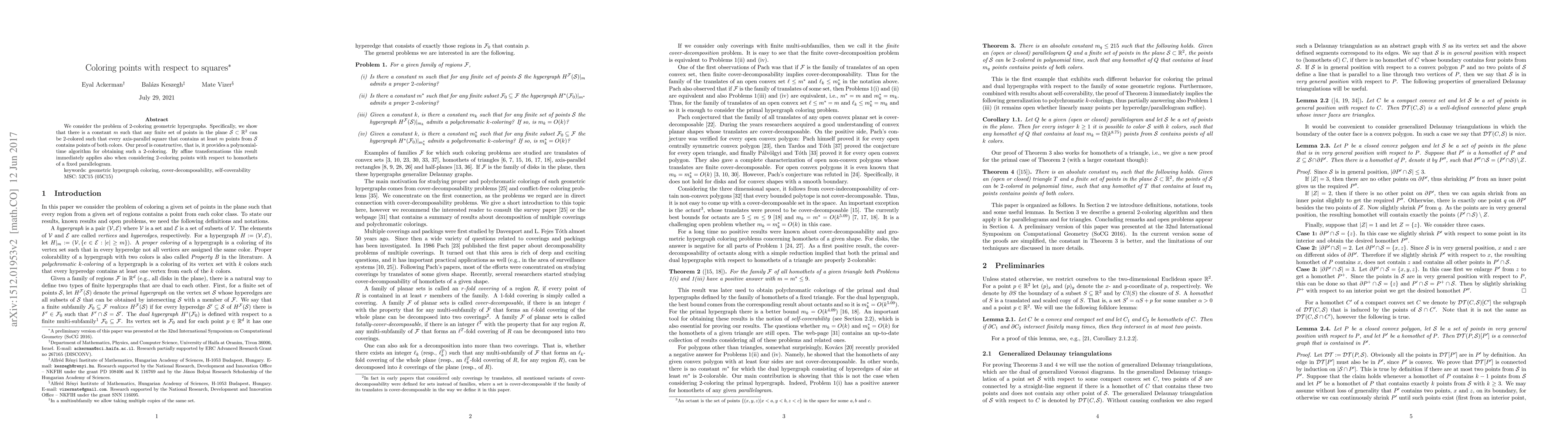 We consider the problem of $2$-coloring geometric hypergraphs. Specifically, we show that there is a constant $m$ such that any finite set of points in the plane $\mathcal{S} \subset {\mathbb R}^2$ can be $2$-colored such that every axis-parallel square that contains at least $m$ points from $\mathcal{S}$ contains points of both colors. Our proof is constructive, that is, it provides a polynomial-time algorithm for obtaining such a $2$-coloring. By affine transformations this result immediately applies also when considering $2$-coloring points with respect to homothets of a fixed parallelogram.