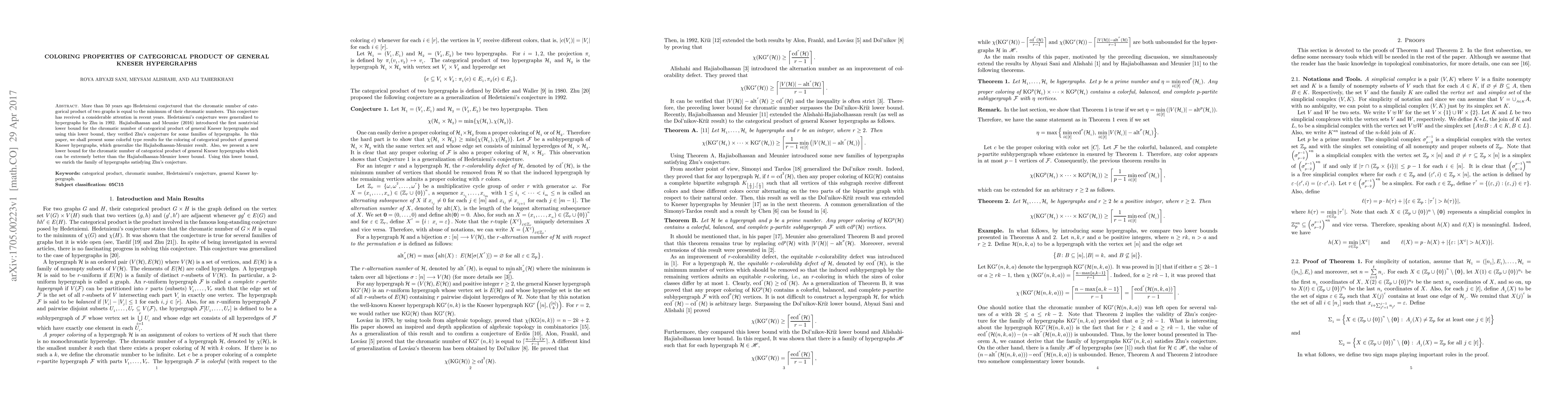 More than 50 years ago Hedetniemi conjectured that the chromatic number of categorical product of two graphs is equal to the minimum of their chromatic numbers. This conjecture has received a considerable attention in recent years. Hedetniemi's conjecture were generalized to hypergraphs by Zhu in 1992. Hajiabolhassan and Meunier (2016) introduced the first nontrivial lower bound for the chromatic number of categorical product of general Kneser hypergraphs and using this lower bound, they verified Zhu's conjecture for some families of hypergraphs. In this paper, we shall present some colorful type results for the coloring of categorical product of general Kneser hypergraphs, which generalize the Hajiabolhassan-Meunier result. Also, we present a new lower bound for the chromatic number of categorical product of general Kneser hypergraphs which can be extremely better than the Hajiabolhassan-Meunier lower bound. Using this lower bound, we enrich the family of hypergraphs satisfying Zhu's conjecture.