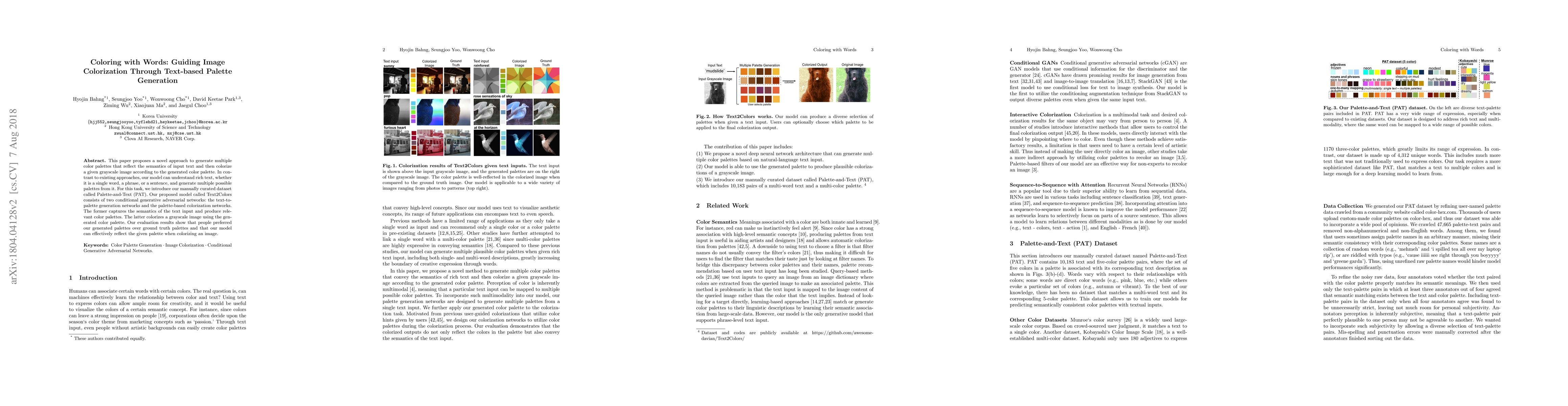 This paper introduces a novel method for generating color palettes based on text semantics to colorize grayscale images. The Text2Colors model uses two conditional GANs to generate palettes from text inputs and colorize images accordingly, outperforming existing methods and receiving positive user feedback.