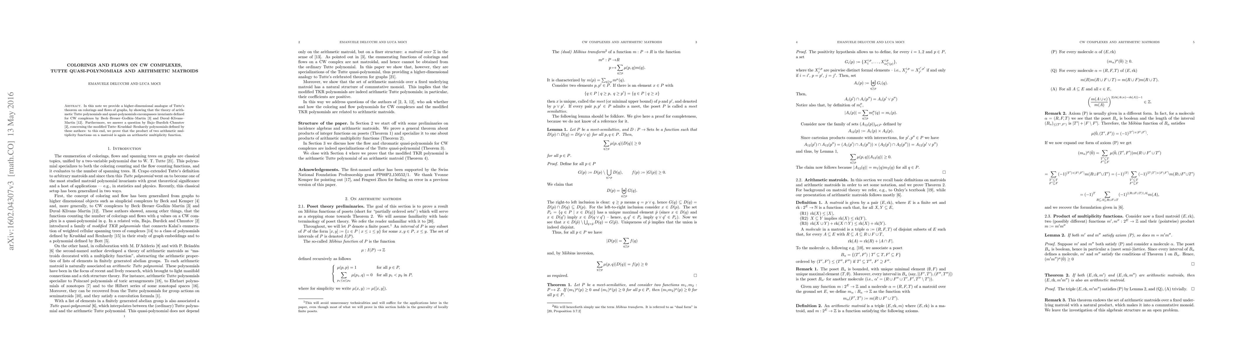 This paper extends Tutte's theorem on colorings and flows to CW complexes, demonstrating that arithmetic Tutte polynomials and quasi-polynomials provide invariants for these higher-dimensional structures. It also addresses a question about modified Tutte polynomials by proving that the product of two arithmetic multiplicity functions on a matroid remains an arithmetic multiplicity function.