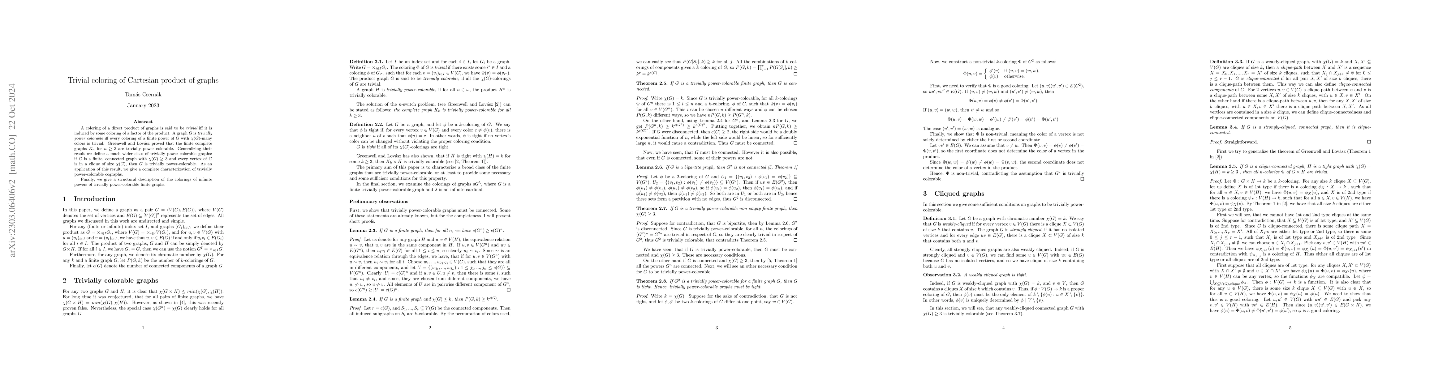 This paper proves that the product of two connected, tight graphs with chromatic number at least 3, where one is weakly cliqued, is trivially colorable. It further shows that such graphs are trivially power-colorable, characterizes trivially power-colorable cographs, and explores the colorings of infinite powers of these graphs.