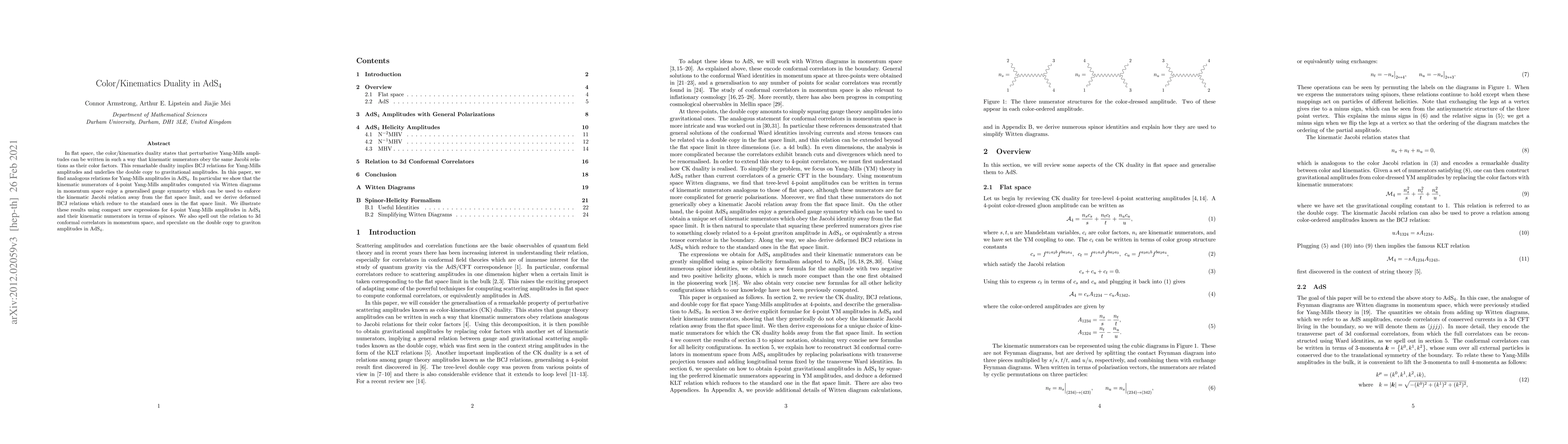 This paper explores the color/kinematics duality in Anti-de Sitter space (AdS$_4$), demonstrating that 4-point Yang-Mills amplitudes exhibit a generalized gauge symmetry enforcing kinematic Jacobi relations. It derives deformed BCJ relations that revert to standard ones in flat space and provides new spinor-based expressions for these amplitudes.