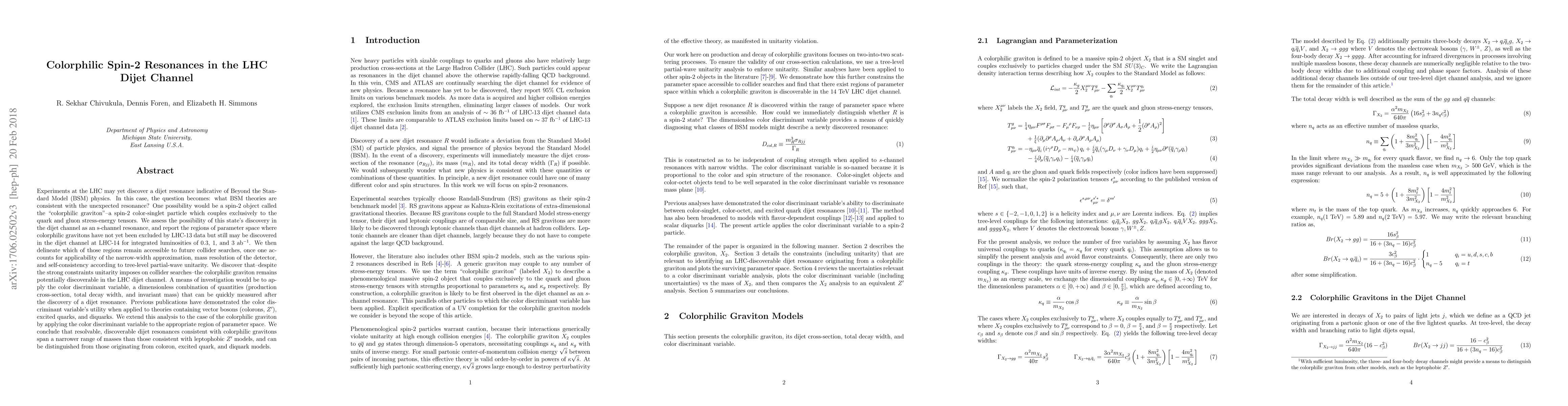 Experiments at the LHC may yet discover a dijet resonance indicative of Beyond the Standard Model (BSM) physics. In this case, the question becomes: what BSM theories are consistent with the unexpected resonance? One possibility would be a spin-2 object called the colorphilic graviton--a spin-2 color-singlet particle which couples exclusively to the quark and gluon stress-energy tensors. We assess the possibility of this state's discovery in the dijet channel as an s-channel resonance, and report the regions of parameter space where colorphilic gravitons have not yet been excluded by LHC-13 data but still may be discovered in the dijet channel at LHC-14 for integrated luminosities of 0.3, 1, and 3 ab$^{-1}$. We then delineate which of those regions remain accessible to future collider searches, once one accounts for applicability of the narrow-width approximation, detector mass resolution, and self-consistency according to tree-level partial-wave unitarity. We discover that--despite the strong constraints unitarity imposes on collider searches--the colorphilic graviton remains potentially discoverable in the LHC dijet channel. A means of investigation would be to apply the color discriminant variable (CDV), a dimensionless combination of quantities (cross-section, decay width, and invariant mass) that can be quickly measured after the discovery of a dijet resonance. Previous publications have demonstrated the CDV's utility when applied to theories containing Z', colorons, excited quarks, and diquarks. We extend this analysis to the colorphilic graviton by applying the CDV to the appropriate region of parameter space. We conclude that resolvable, discoverable dijet resonances consistent with colorphilic gravitons span a narrower range of masses than those consistent with leptophobic Z' models, and can be distinguished from those originating from coloron, excited quark, and diquark models.