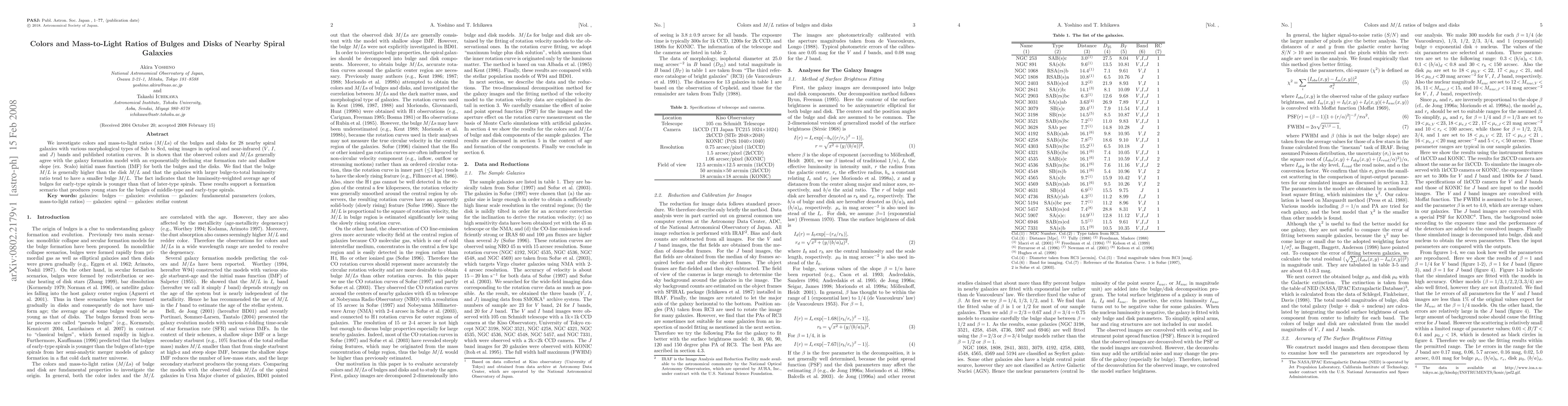 This study examines the colors and mass-to-light ratios of bulges and disks in 28 nearby spiral galaxies, revealing that bulges generally have higher mass-to-light ratios than disks, supporting a formation model where bulges in early-type spirals contain younger stars.
